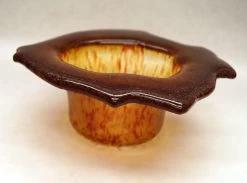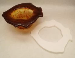 Fish bowl shown by artist Brenda Ellens created in the Kiln Cast Bowls Class at the Lansing Creativity Center. Second project by artist Val Oswalt-De Waard.