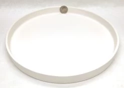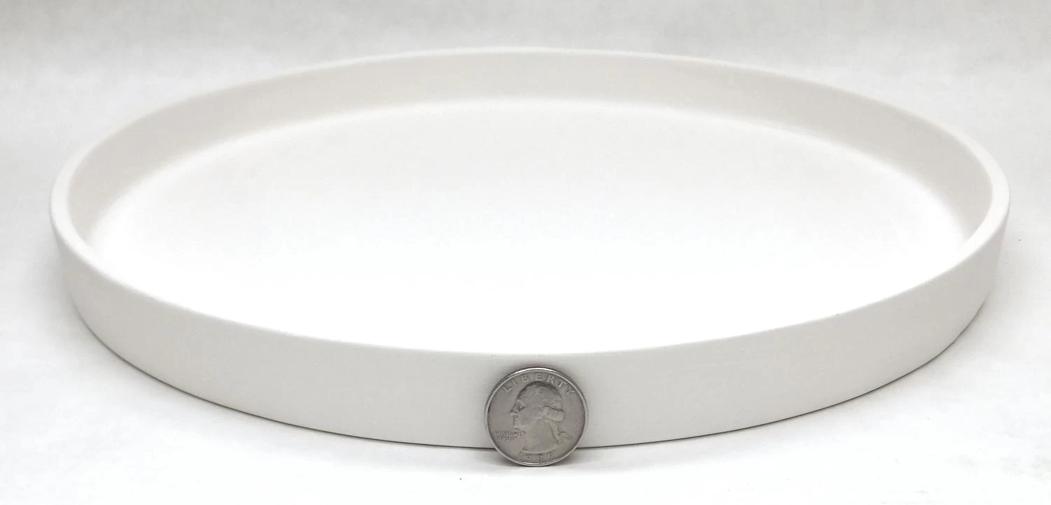 Internationally renowned glass artist Patty Gray has partnered with Creative Paradise to bring you this Dam Mold to expand your creative boundaries. Create incredible glass slabs that are thick, consistent, and perfectly rounded; no need for coldworking. Use the finished slabs for roll-ups, drop rings, or to create thick slumped bowls. Mold measures 11″ in diameter. Mold creates a 10-1/2″ diameter round slab, up to 7/8″ deep. See size perspective of mold with quarter images shown.