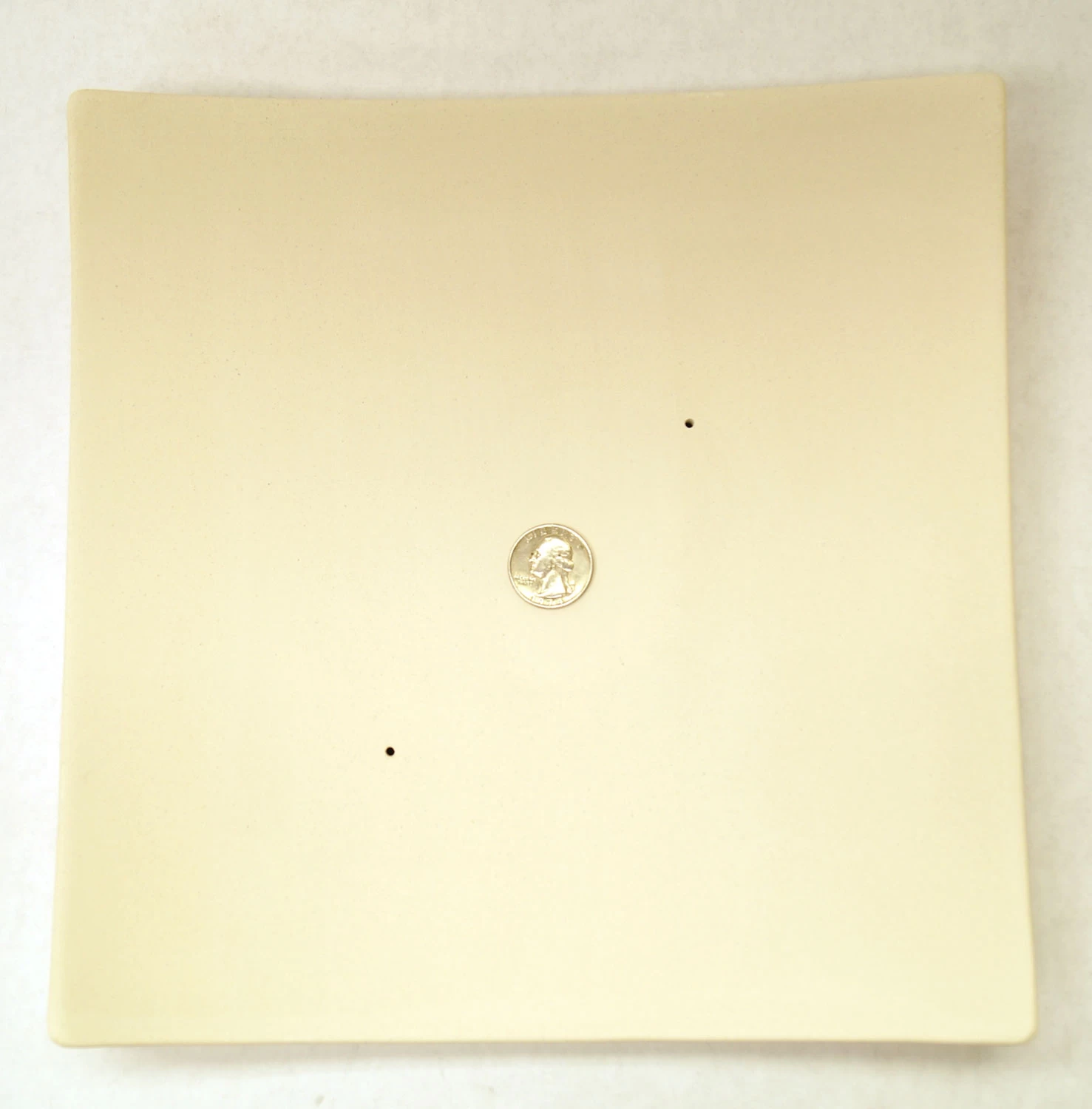 Create beautiful serving plates and glass art for your home. Premium Bullseye molds stand up to repeated use with little maintenance. Ceramic molds from Bullseye are slipcast from a specially formulated clay body, feature exceptionally smooth surfaces, accept kiln wash uniformly, and will not crack under repeated usage when handled properly. Individual molds may have slight variations in dimensions shown. See size perspective of mold with quarter image shown. 10-1/8″ x 10-1/8″ x 1-7/8″ deep.