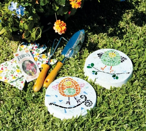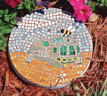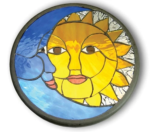 Sun and Moon from “Tiffany Garden II”. Outdoor garden stones by artist Rita Schwab and Diana Duvall. Additional mage courtesy of Spectrum Glass.