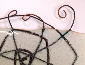 Great for applying quick and easy decoration to your soldering. You may also use copper wire in fusing projects. Copper may react to certain glass colors, oxidize or develop fire scale during firing, producing a very organic, aged patina finish.