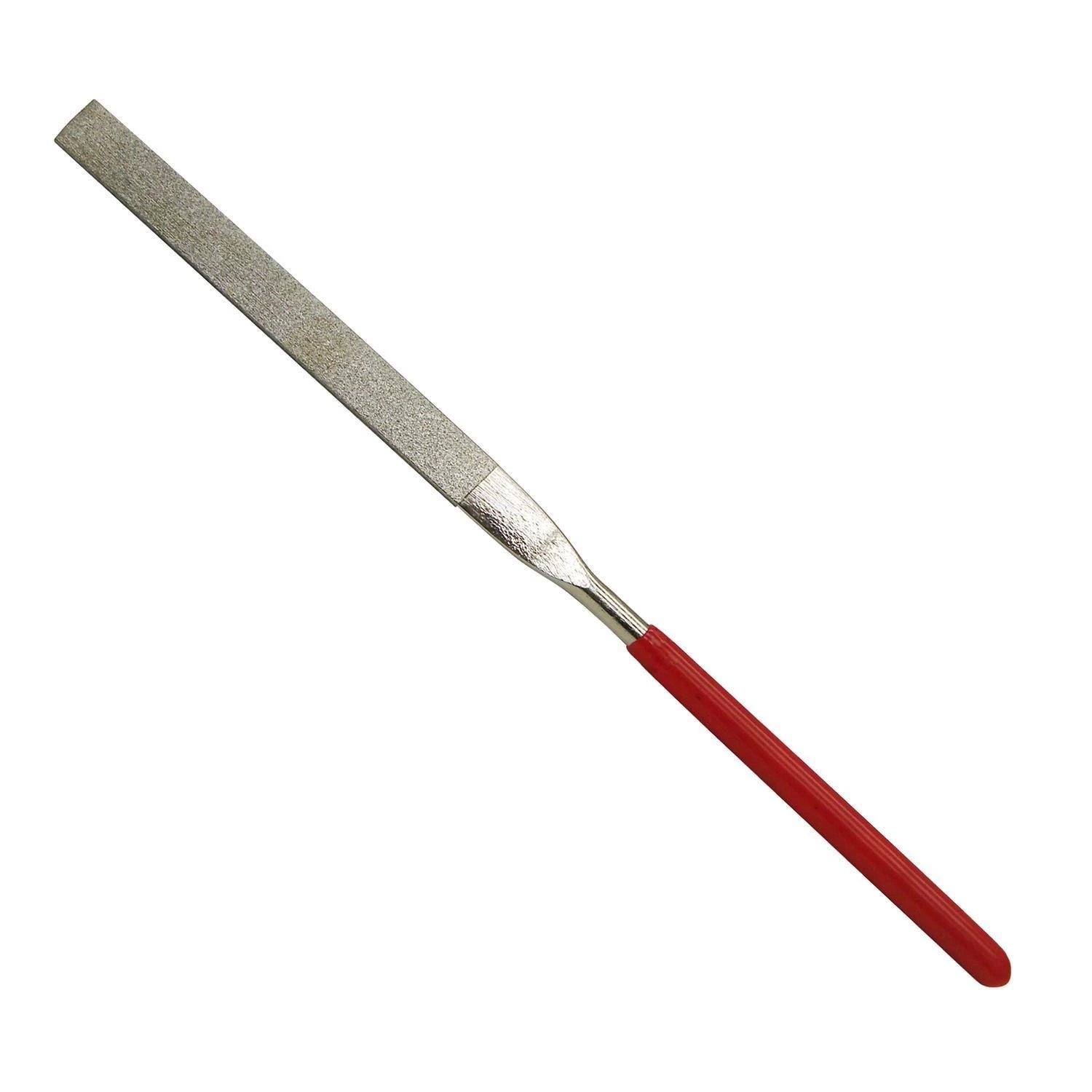 Great for taking the sharp edges off of glass. Remove burrs and smooth edges on cut glass and castings with this hand file. 6-3/8″ long with smooth rubber grip handle for comfort and control. Filing surface measures 2-3/4″ long x 1/4″ wide. 260 grit.