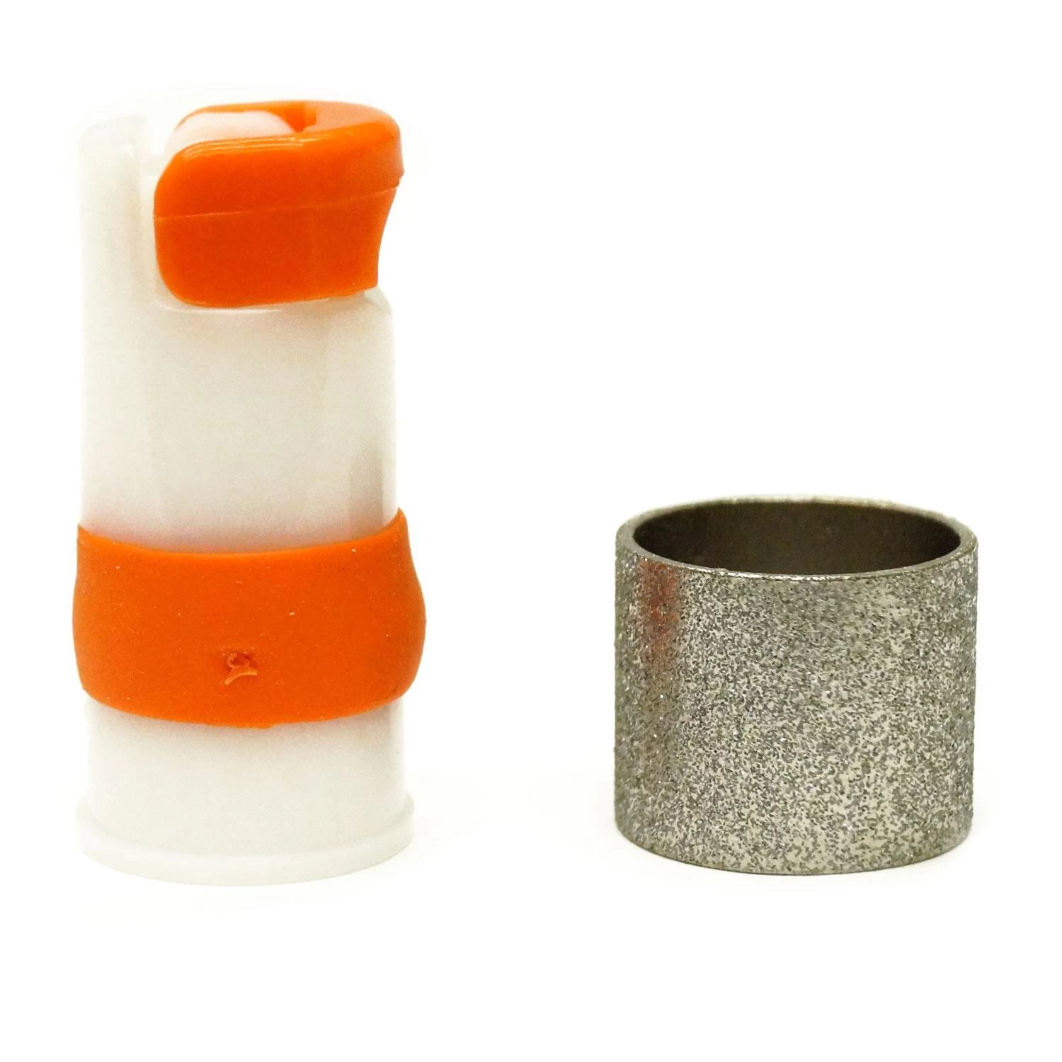 The quick-fit bit system is unlike any other bit in stained glass! It is designed to be quick to change without the use of a hex wrench or other tools like conventional grinder bits. With a flip action of the holder’s lever, you can change your bit, or the grit of the bit, in seconds! There’s no need to find and use keys or locking tools – no grinder freeze-ups! Fits The Grinder, Glastar G8, Diamond Tech, and Burk grinders.Â