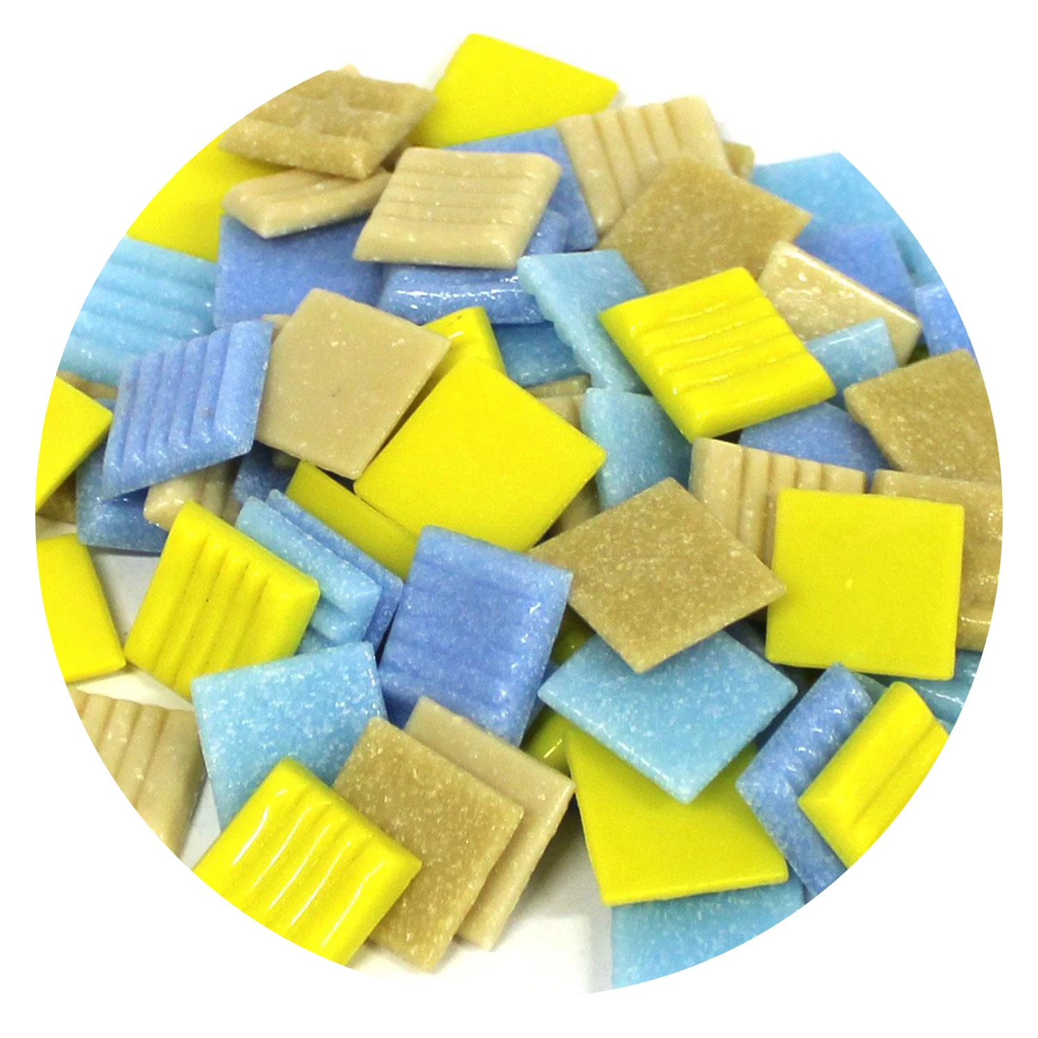 Mix it up with this great glass tile mix! All tiles are durable, strong, and beautiful. Glass tiles have shimmery translucent highlights that will add sparkle to your designs and are perfect for keepsakes projects and gifts. Mosaic whole, or easily nip for smaller shapes.