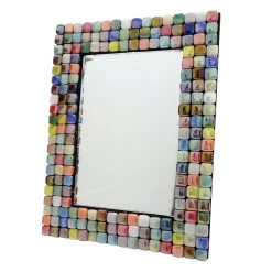 Made from 97% post-consumer glass, this tile is great for the environmentally conscious artist. Classico mini tiles feature a glossy iridized surface tiles with rounded edges making them perfect for students or camps. Tile color runs through the entire depth of the tile so it resists fading. Durable tiles rarely crack but can easily be nipped to the size you need. Tiles measure approximately 3/8″ x 3/8″ x 1/8″ (8 mm square); sold in a 1/2 lb package containing approximately 400 tiles. Covers approximately 39 square inches.