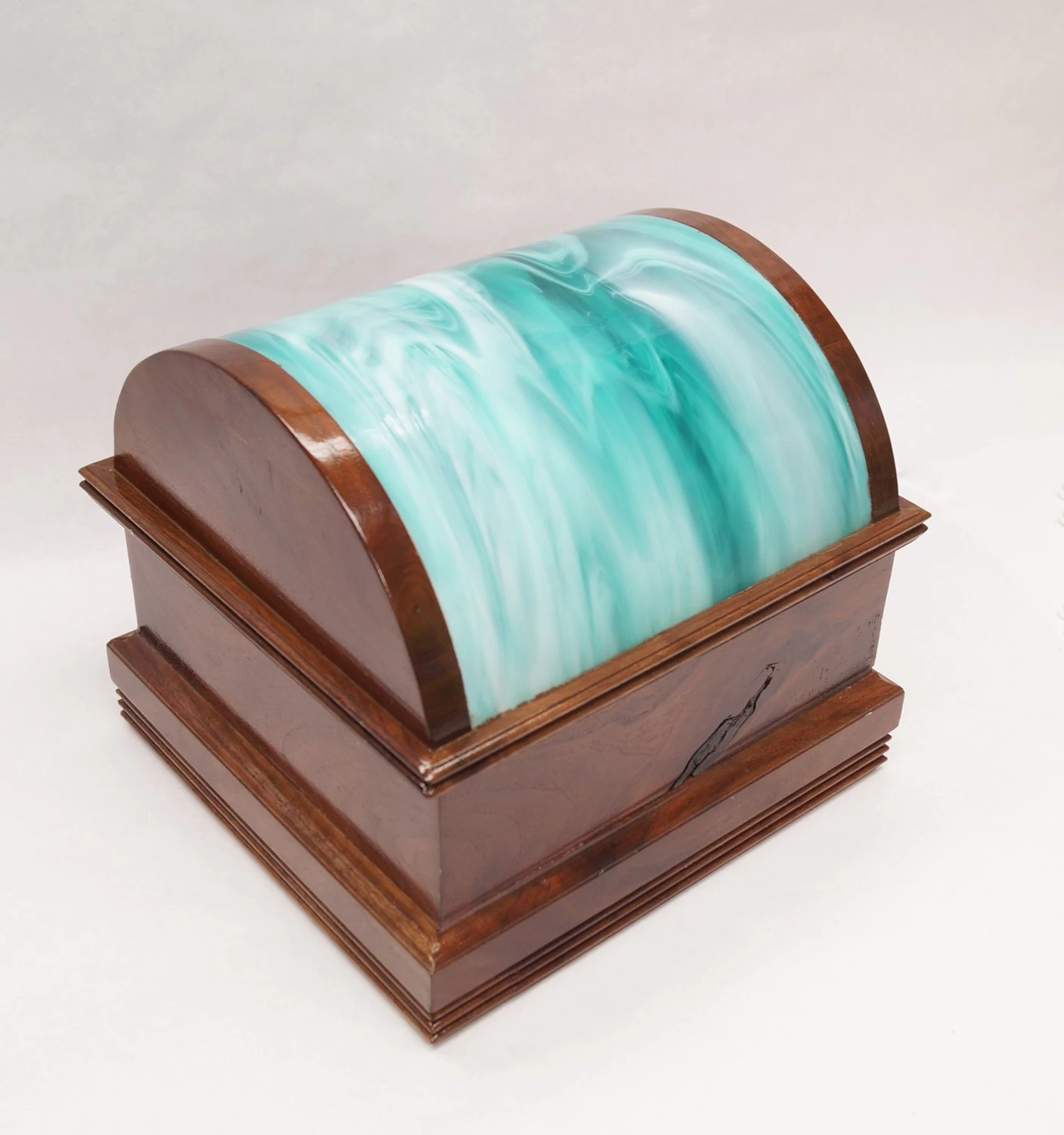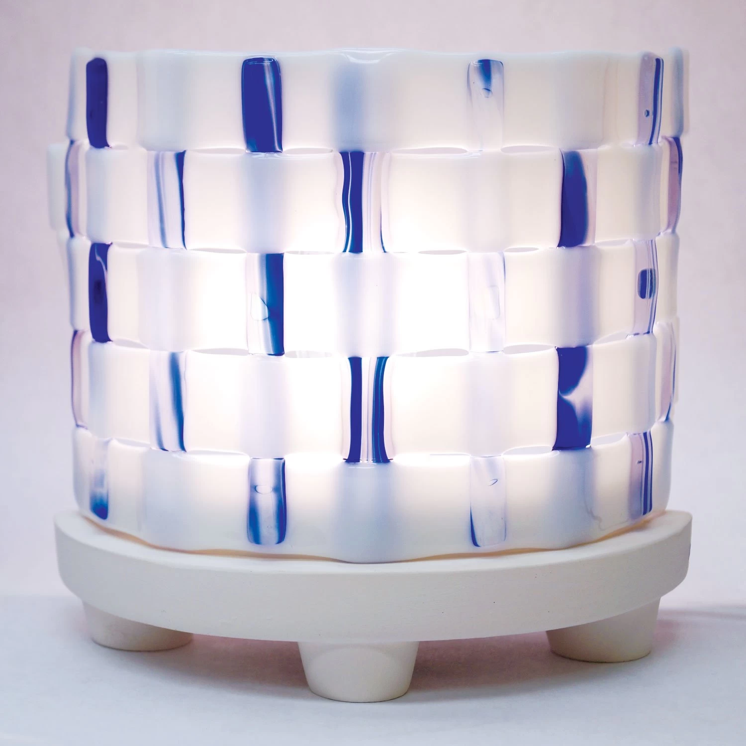 Basket weave project created Dane Porter. Last three lamp projects courtesy of Creative Paradise. Handmade wood box featuring slumped glass lid insert by artist Jim Haack.