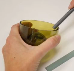 Grind away burs and smooth glass edges with these handy abrasive stones. Safer to use than sand paper, stone keeps your hands safe from glass while grinding away burs and smoothing bottle edges. Use the rounded side to easily smooth inside the curved edges of bottles and jars; use the flat side to sand and smooth edges. Simply dip your stone in water to lubricate and minimize glass dust. 1/2″ diameter is even small enough to grind narrow bottle necks. Stones feature a fine 180 grit. 6″ long with a 1/2″ diameter.