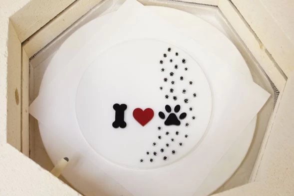 Clear glass encapsulates black opal that centers in a fun paw print pattern. Made from premium Bullseye fusible glass, use in fusing, flameworking and micro mosaic projects.1/2 oz. pack. 90 COE.