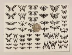 Detailed silhouettes are perfect for jewelry and other fused art with personality. Fusible enamel decals stay black when fired in the kiln. Sheet measures 5″ x 7″ and includes 57 decals. Designs range in size from approximately 1/2″ to 1-1/4″. Works with all glass COEs.