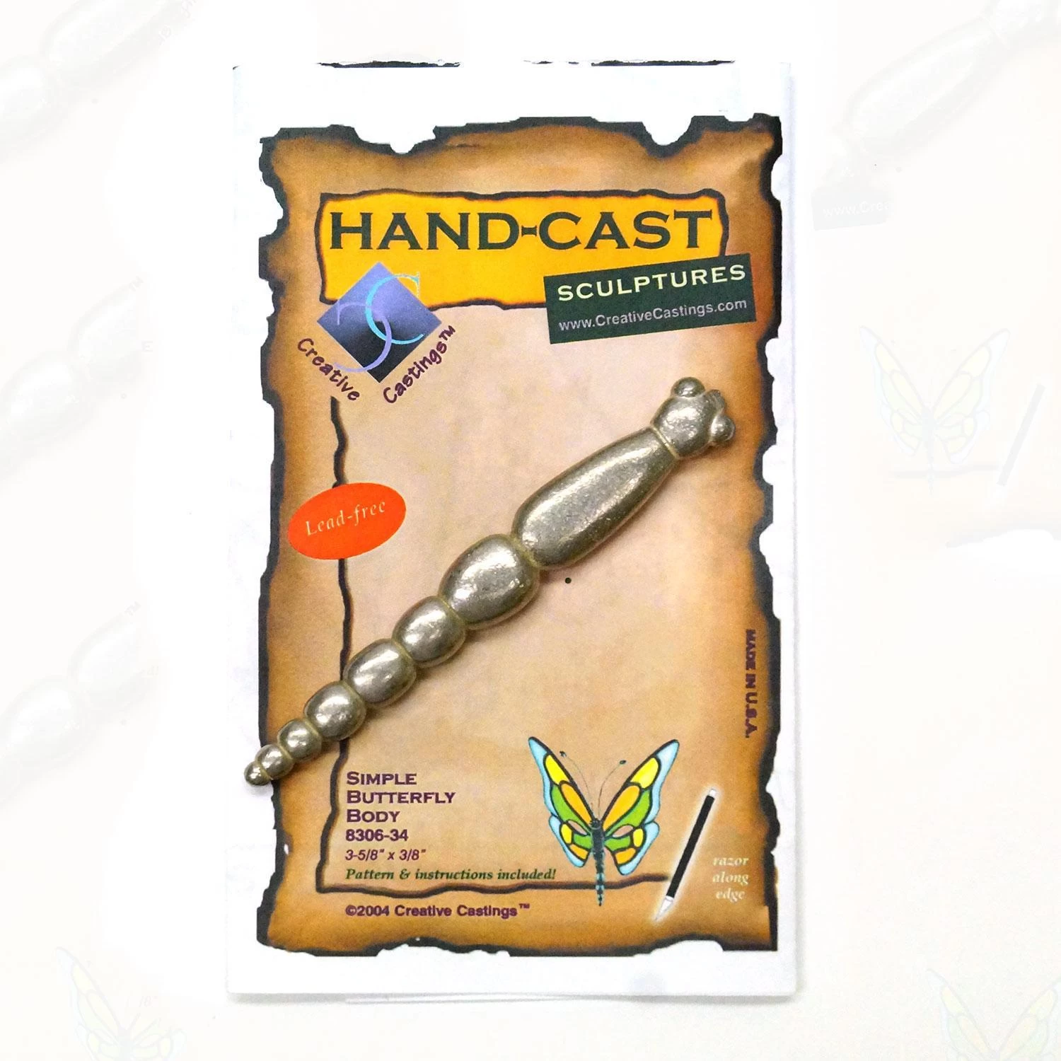 Capture a stunning butterfly in flight with this beautiful stained glass butterfly project. The detailed cast metal body includes a free pattern and assembly instructions. Figurine is lead free for safe handling.Â
