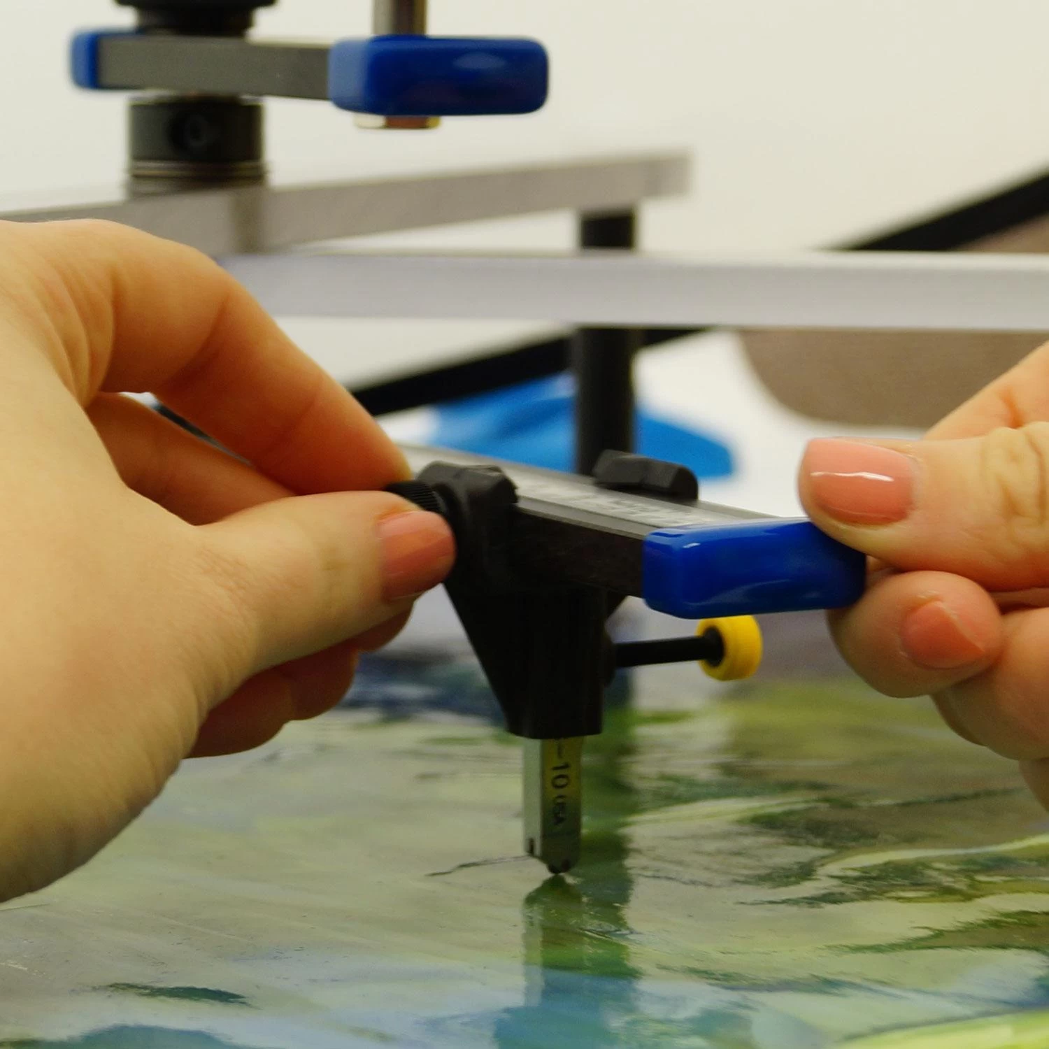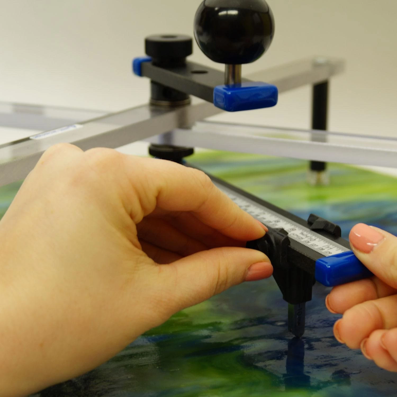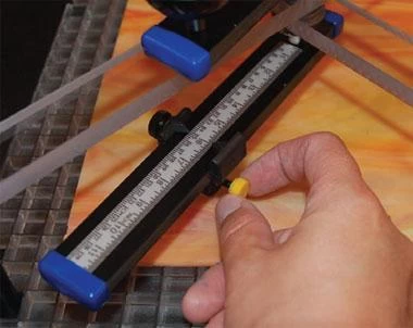 Setting the cutter head for the perfect size is easy. Just position using the clearly marked ruler as shown in the additional image and tighten the thumb nut, then press down on the swivel handle and turn to score.