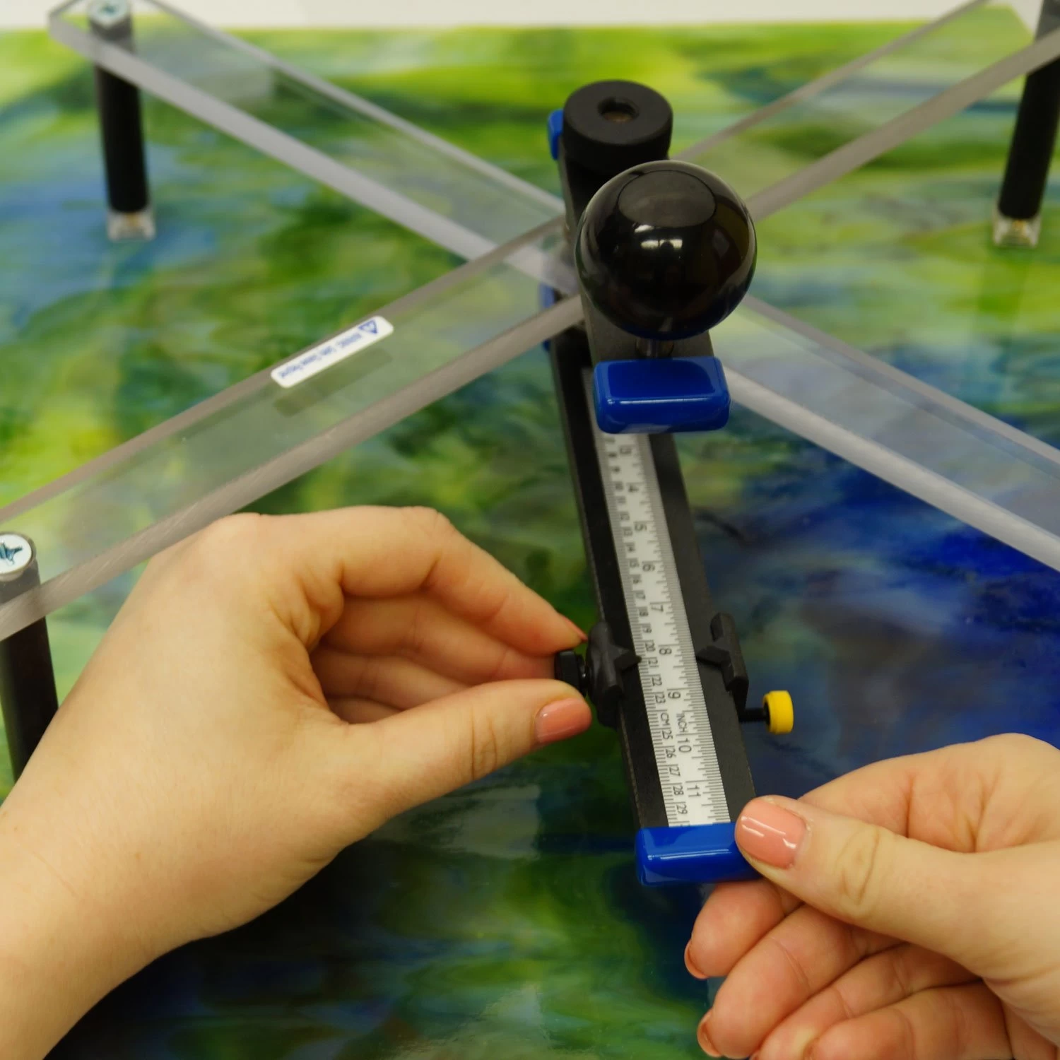 To cut a full 12″ circle lift a leg up, and slide in a 13” piece of glass at a diagonal. See last addional image.