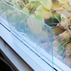This clear glass has a frozen motion look along with some air bubbles, giving it a Reamy or swirl appearance. This easy cutting glass is both affordable and perfect for backgrounds. Glacier Glass is 4mm (5/32″) thick with one smooth side. Feel free to call us to check stock.