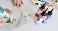 Enjoy creating with fantastically intense colors. Mix to create custom shades for your one-of-a-kind art. Lead-Free. Compatible with art glass and float glass COE’s 85 – 96 and ceramics. Set includes 18 Color Line paints, 1 tip set and 1 spare bottle for mixing your own colors. 2.2 Oz. bottles.