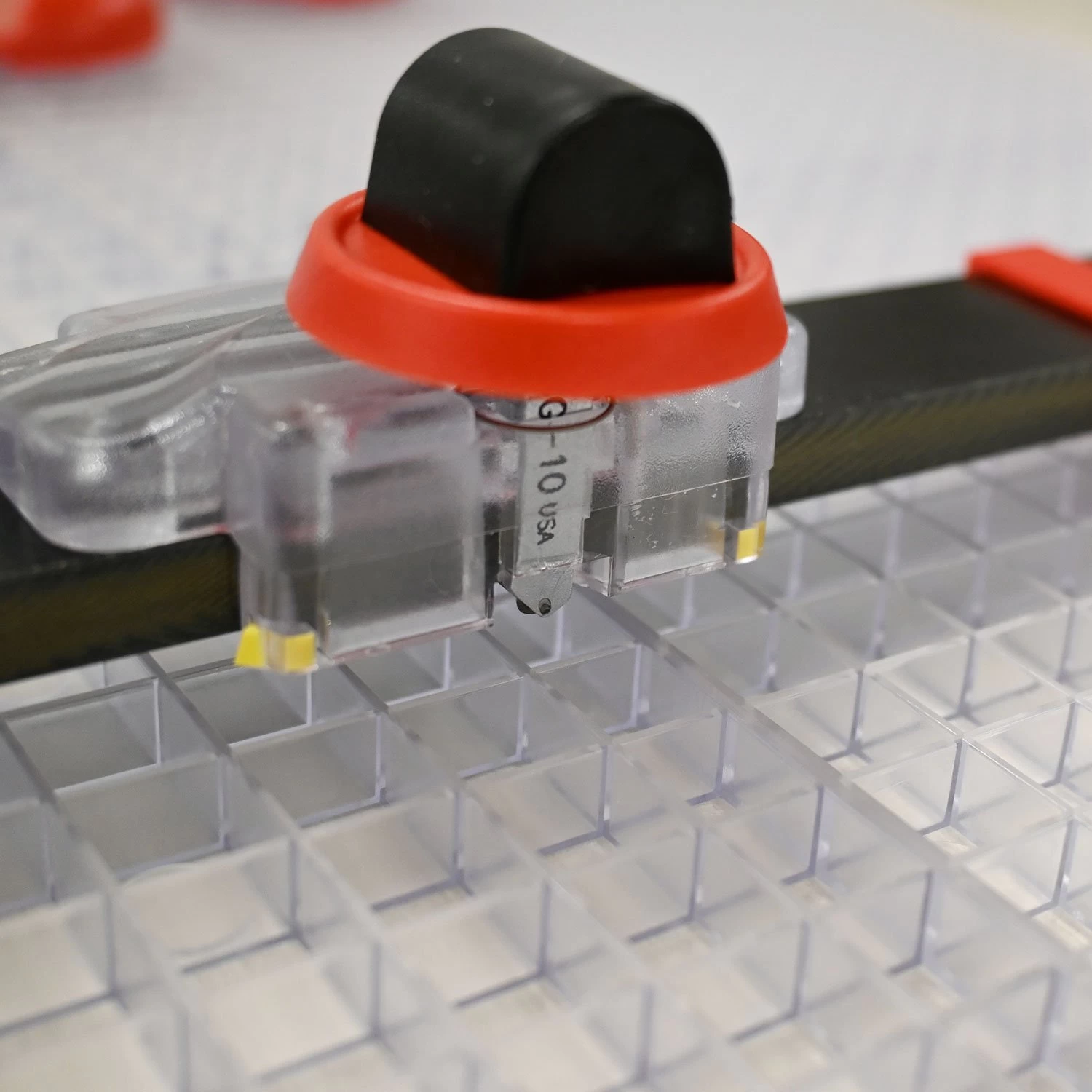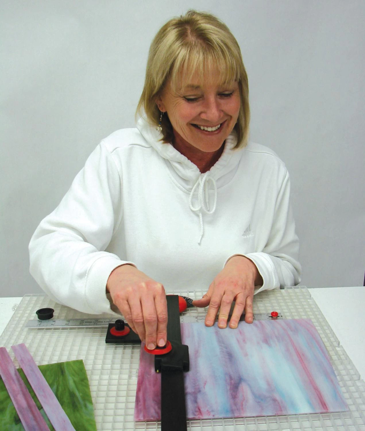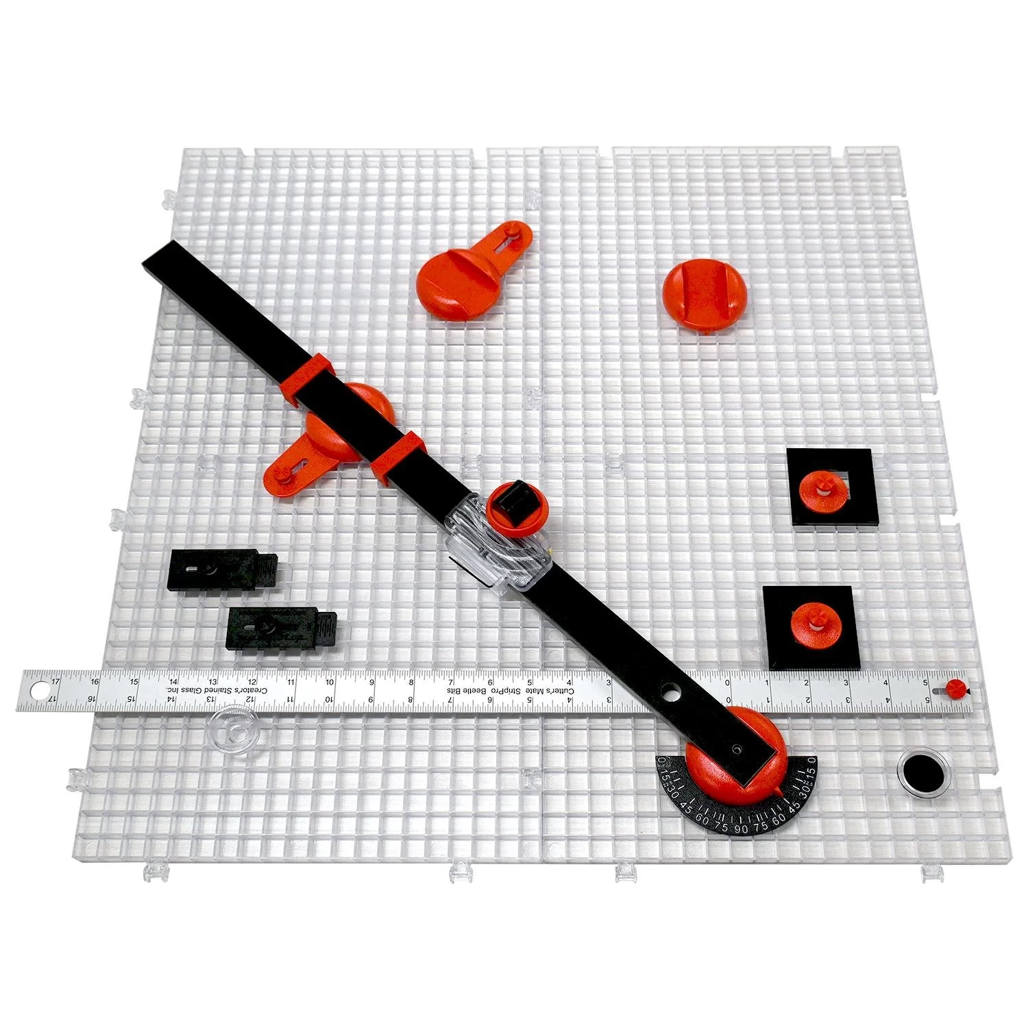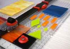 11-1/4″ square interconnecting Waffle Grids are an excellent cutting surface. They hold tools in place and catch glass shards to keep the cutting area safe and clean. The color coding system aligns with your Beetle Cutter for exact scores.