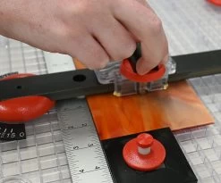 The cutting system features a simple set-up with a swiveling quick compass guide, 18″ ruler for precise cuts, 2 multi-directional glass stops for non-slip positioning, a pair of super stops, 23″ straight edge and rest, 2 adjustable angle rests and an oil well. Use it to create geometric cuts fast!