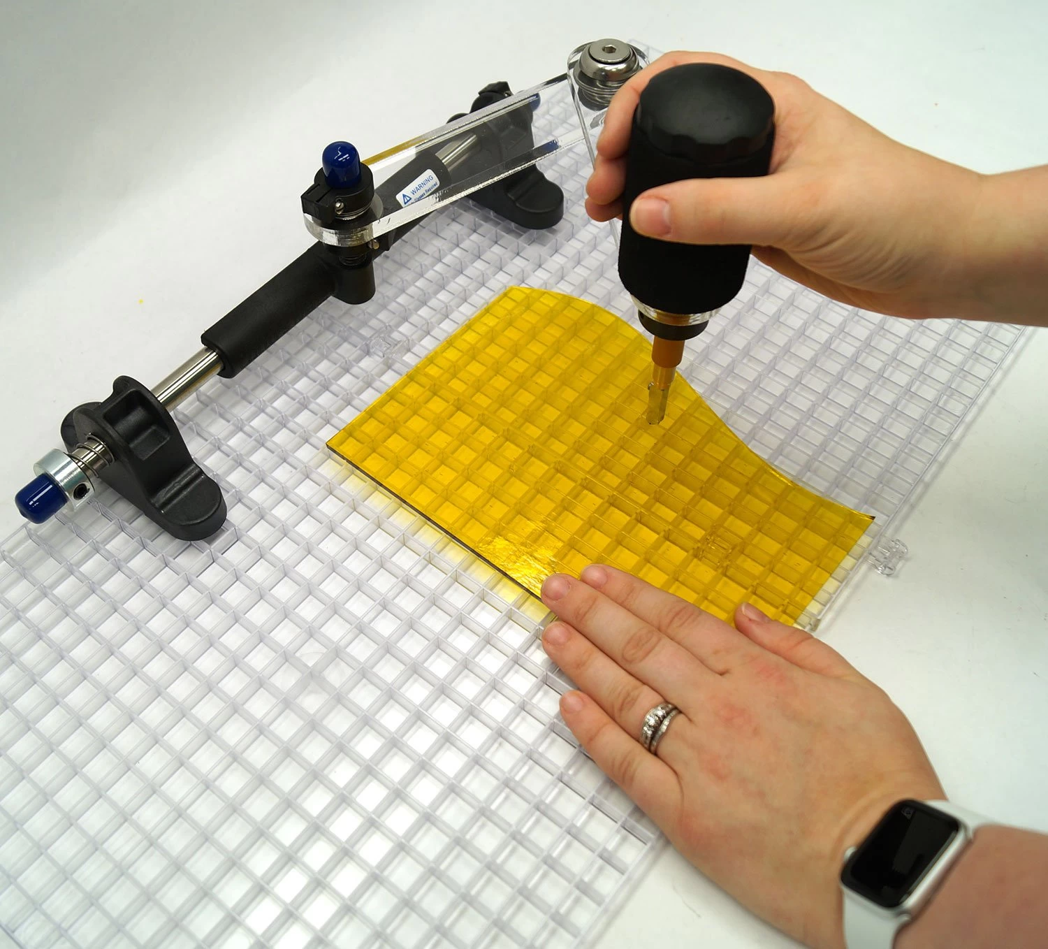 Linear scoring module includes 8″ zero marked ruler with inches on one side and metric measurements on the other. 1″ wide straight edge is made out of Clear Lexan which also includes the ruler stabilizer.