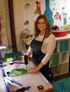 Medium length apron provides great coverage to help keep spills and splatters off your clothes. Two spacious pockets will keep your art glass tools and supplies handy. Ties at the waist and features an adjustable neck band. 30% cotton / 70% polyester blend. Machine washable. Apron measures 28″ long x 24″ wide. Two pockets measure 7″ long x 7″ wide. Makes a great gift for any art glass enthusiast!