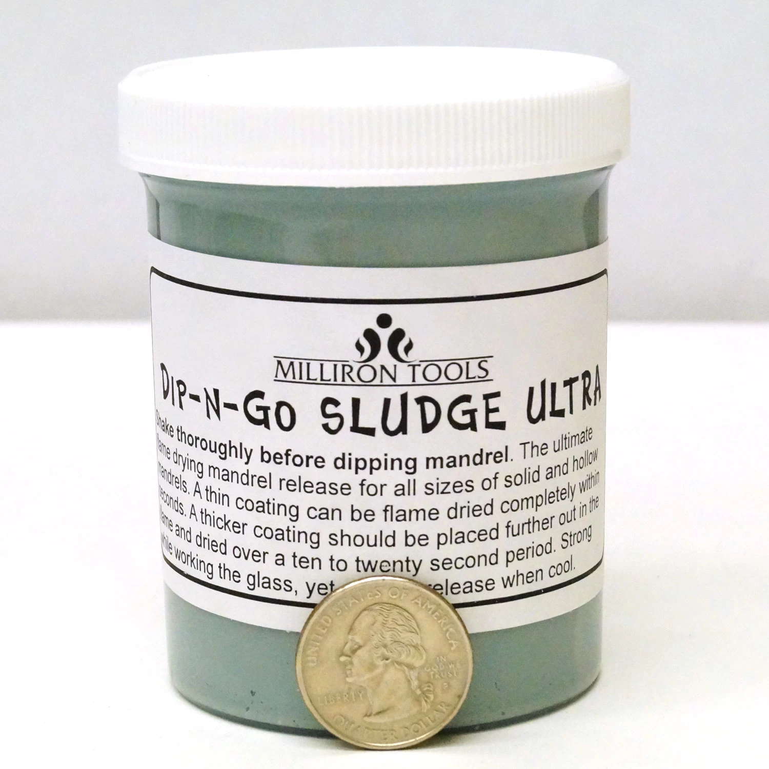 Dip-n-Go Sludge Ultra is an excellent choice for all sizes of solid and hollow mandrels. Release is designed to be flame dried. A thin coat can be dried in seconds in the hottest area of the flame. Where as a thick coat will dry over a 5 second period about 2″ from the torch. Sold in an 8 oz resealable jar.