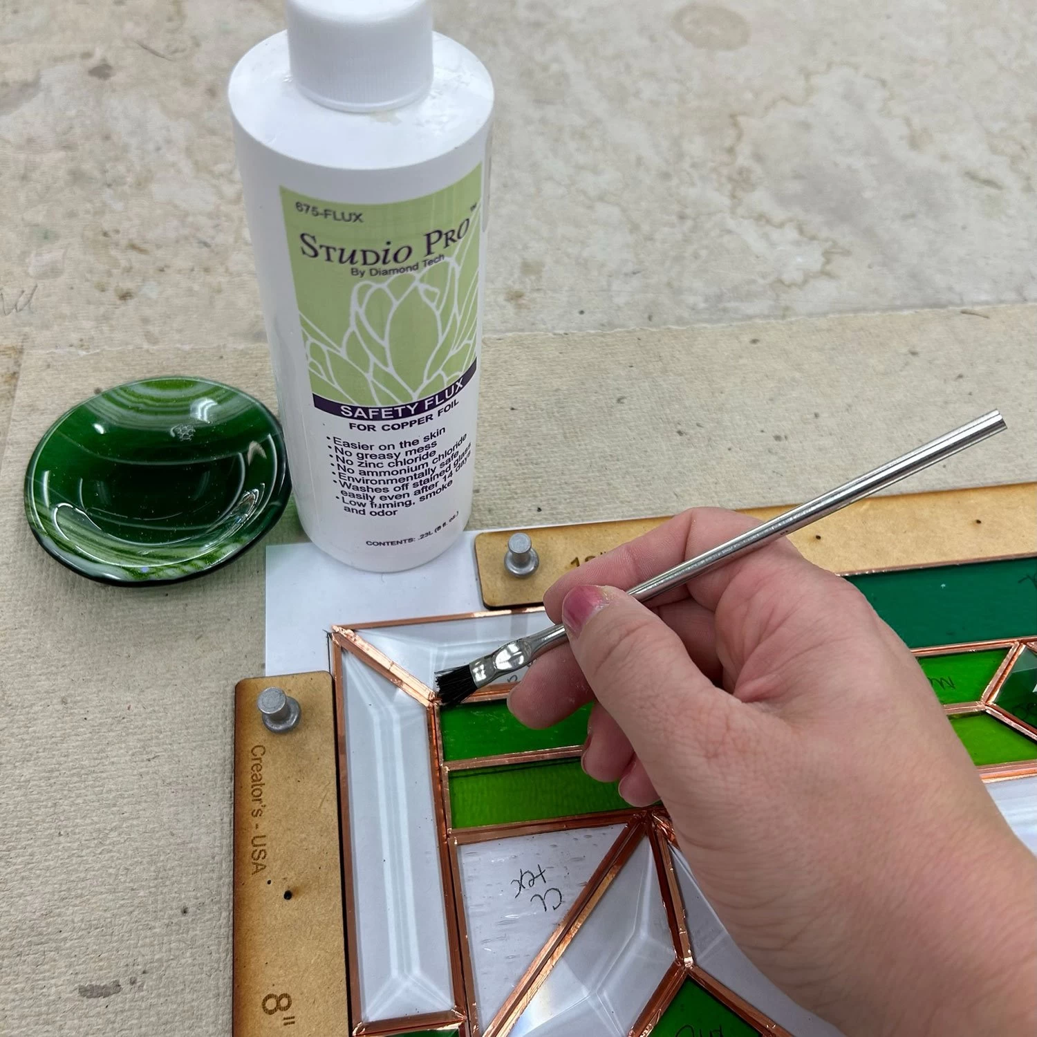 These convenient, disposable brushes are a must-have for any workshop or classroom. Use to apply flux or patina to stained glass panels, brush on etching cream for a quick glass project or even use with adhesives in your next mosaic project. Get a great deal on a box of 144 disposable brushes for applying flux, patinas, etc. Buy the Value Box and never suffer through using a worn out brush!Â