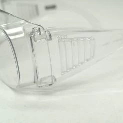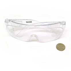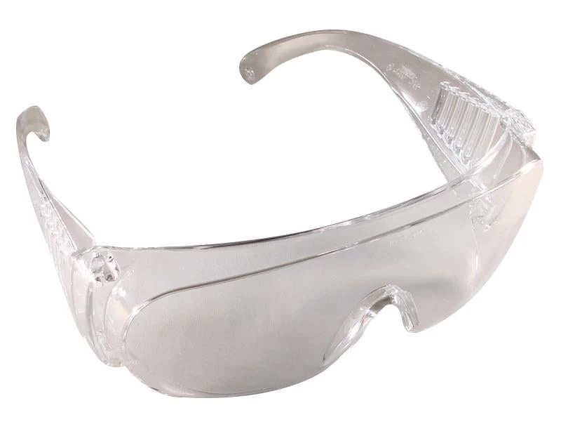 Clear safety glasses are large enough to fit over prescription glasses and features side shields, for wraparound protection.