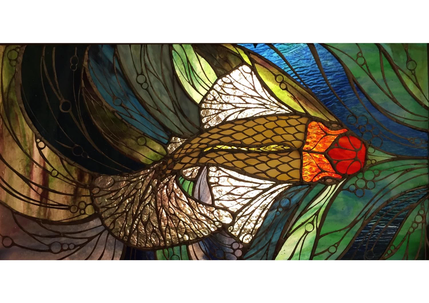 Fish project image by artist Paula Shoulders, Delphi Art Glass Festival entry, 2007. Single fish project created by artist Susan Abercrombie. From Delphi’s Online Artist Gallery. Koi by artist Margo Marquette.
