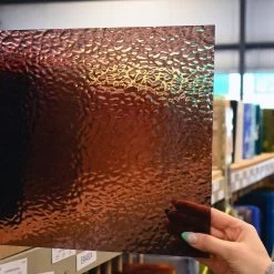 Originally popular in Victorian windows, English Muffle glass is now being reintroduced in both restoration and new work. This glass is known for its traditional muted colors, highly refractive texture and crystalline quality. The multidirectional texture allows minimum waste. Glass pieces may include factory rolled edges.