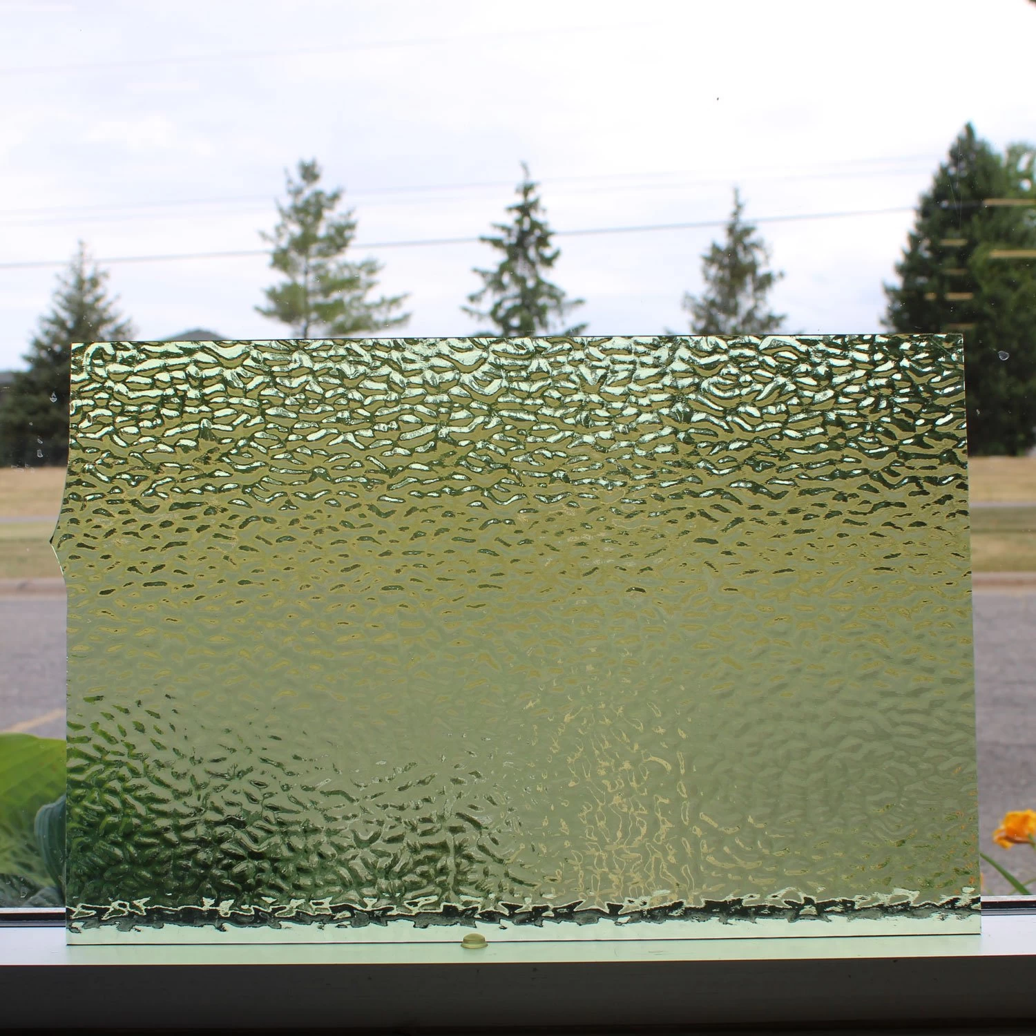 - “Hammered” texture provides privacy without blocking light