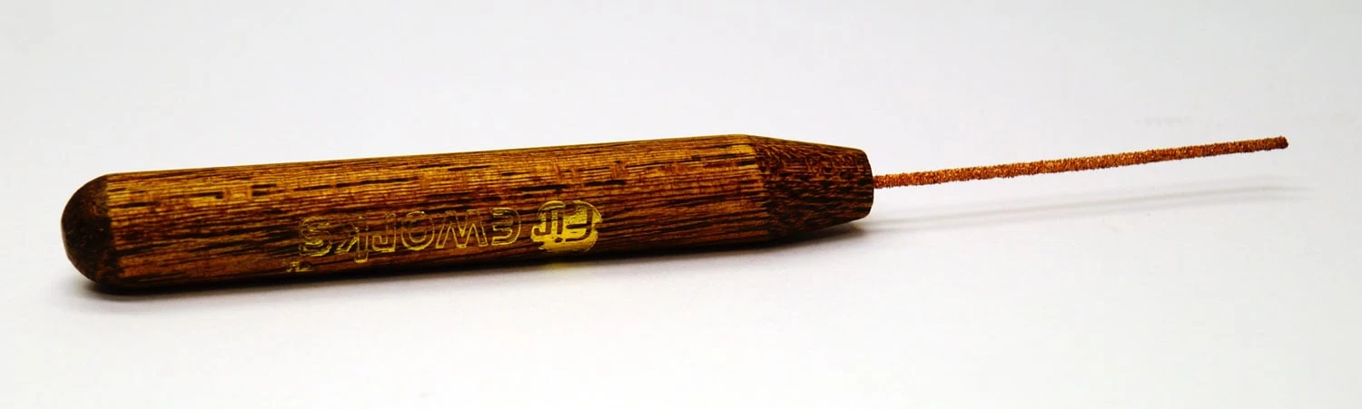 The Fireworks Bead Hole Cleaner is coated with the finest diamond abrasive for a more effective and efficient removal of bead release residue. To use, simply push the narrow diamond coated rod back and forth through the hole in your bead. Measures 5-5/8″ long overall, tip measures 2″ long.