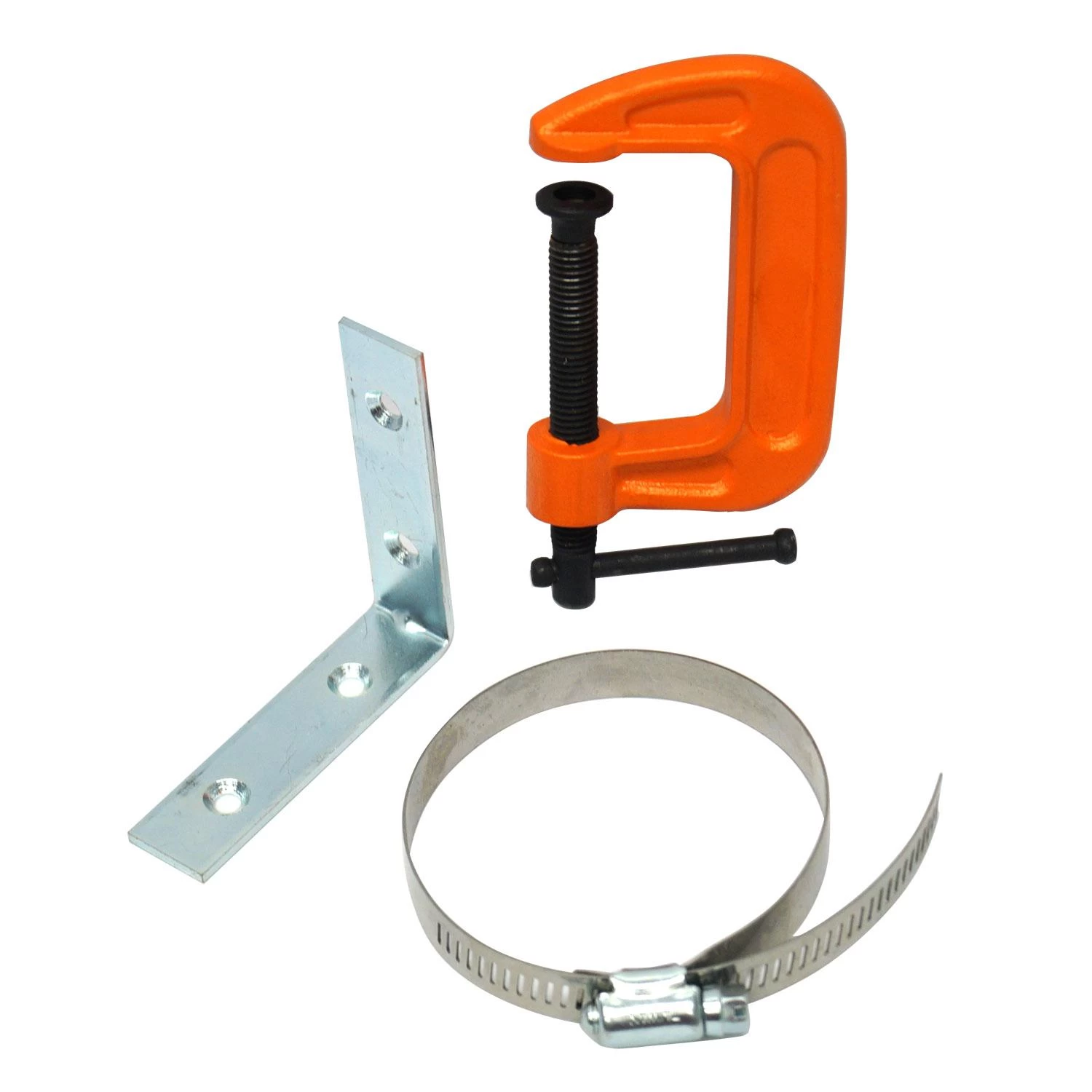Unique one-piece bottle holder will clamp onto the edge of just about any table to securely fasten down your MAPP or propane gas bottle. No slipping. No scratching! Use with Hot Head or Fireworks torch heads.