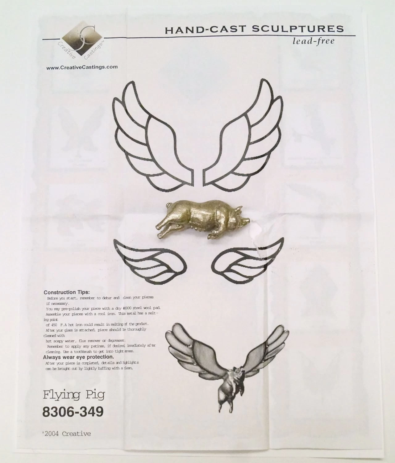 You’ll find another project as fun as this, just as soon as pigs fly. This whimsical lead-free casting includes a free pattern and assembly instructions to create your own flying pig with stained glass wings. Casting measures approximately 2-1/4″ x 1″. Figurine is shown finished, glass is not included.
