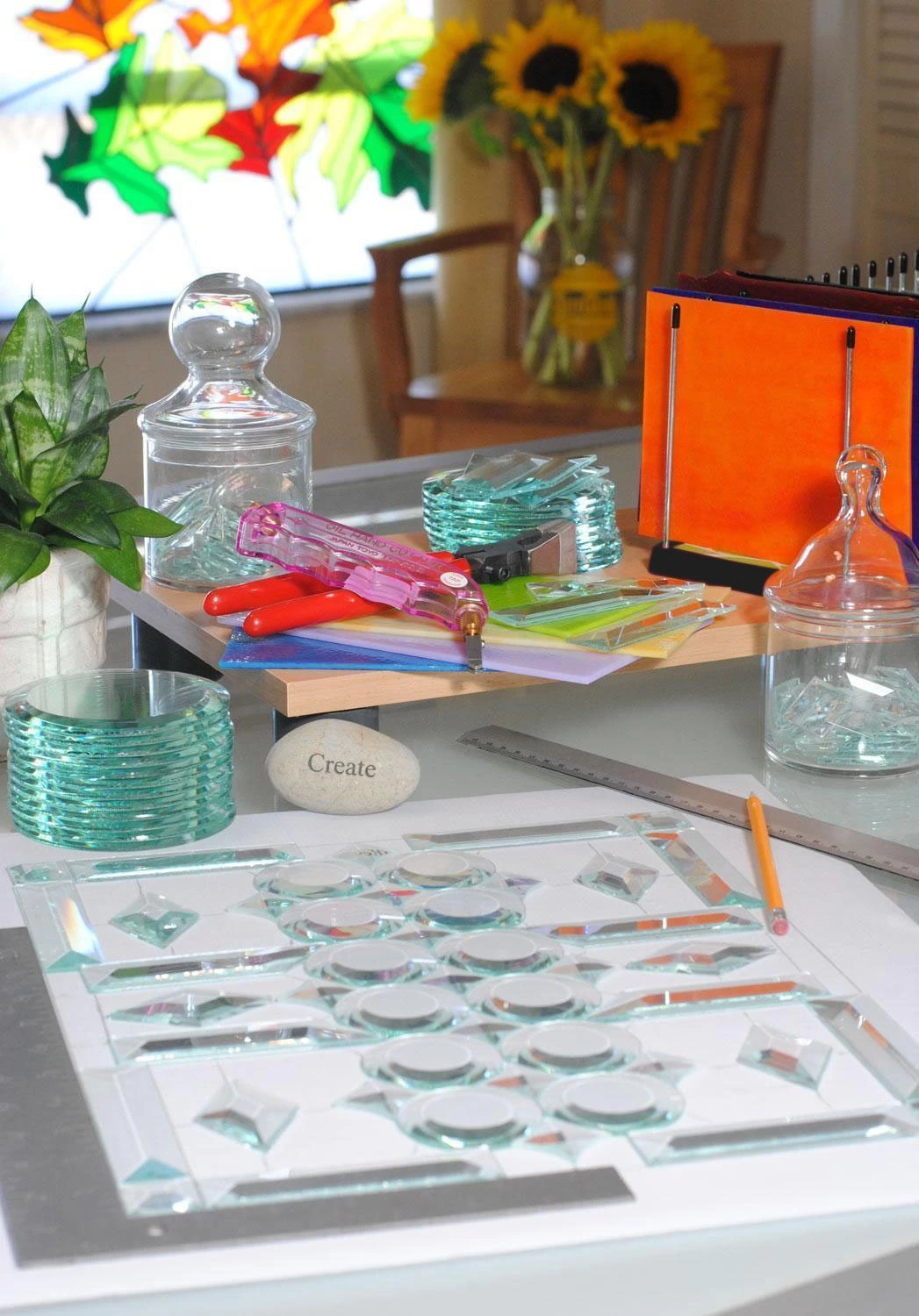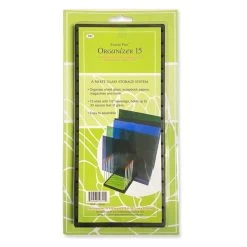 Keep glass sorted, separated and easy to find. This glass organizer has 15 slots and holds up to 32 square feet of stained glass.Â
