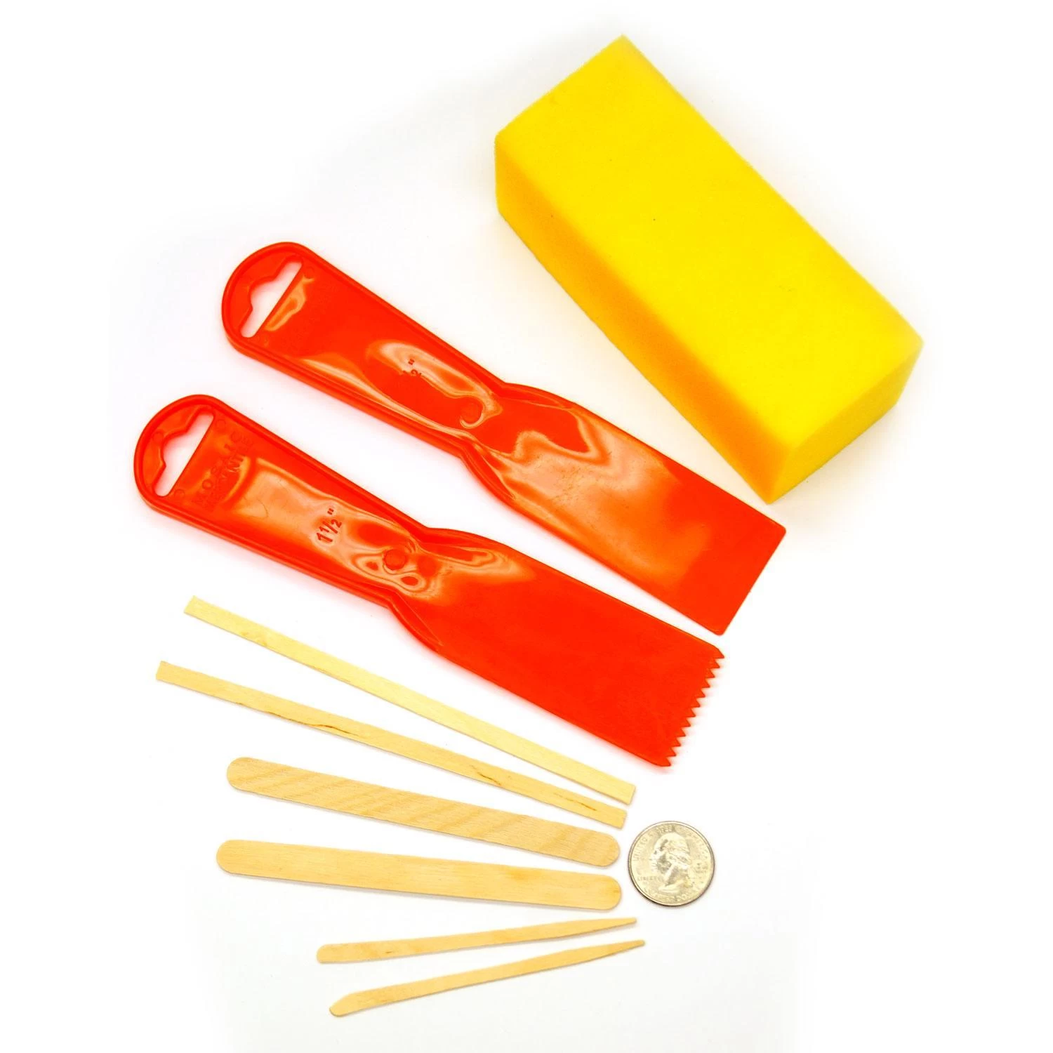Get all the tools you need to apply grout and adhesive in one convenient kit. Set includes trowel, spreader, grout sponge and six craft sticks. Just include gloves and you’re ready to start your next mosaic project.