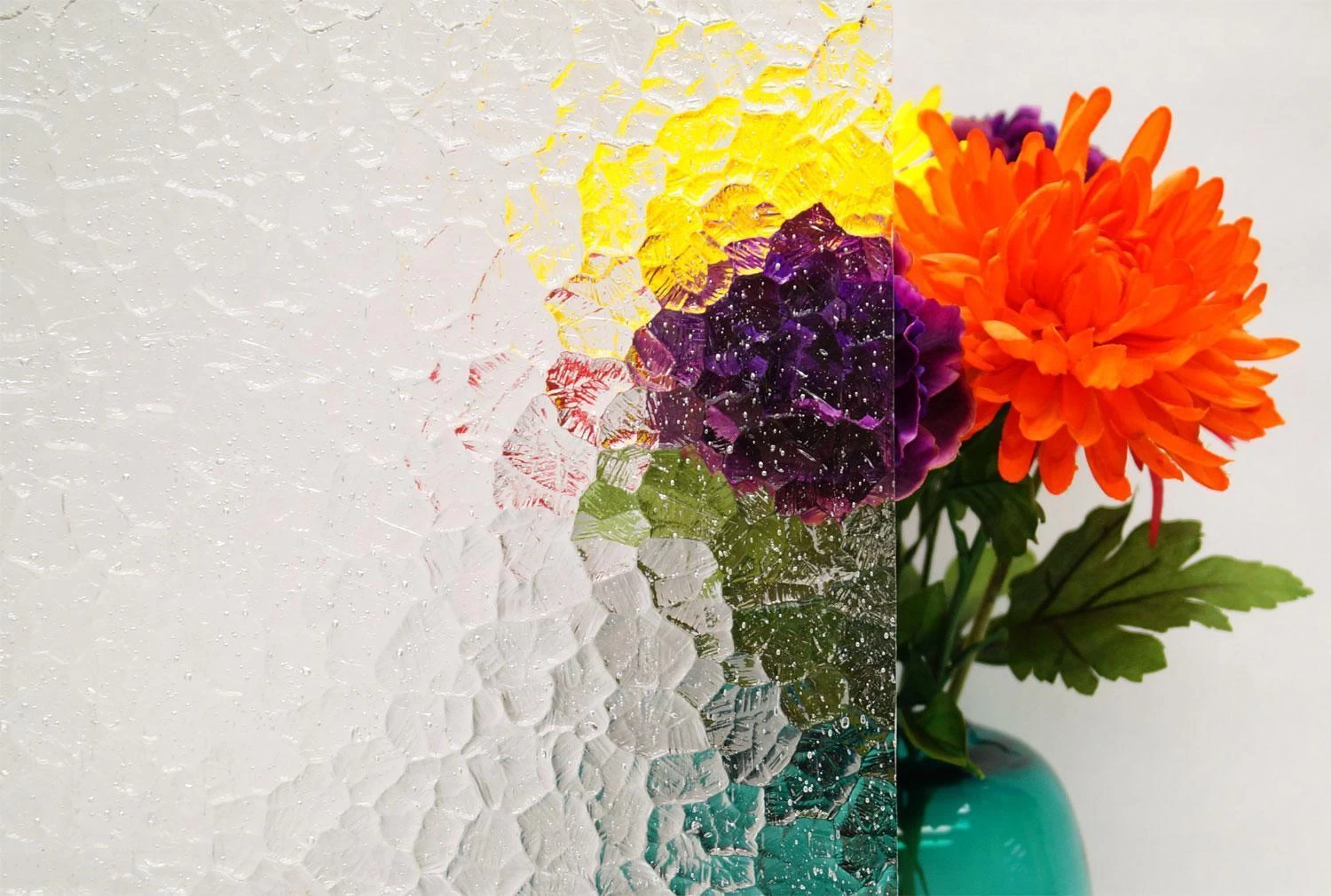 Clear texture glass is an economical way to add interest to cabinets or the background of any project.Â