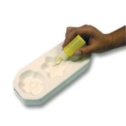 Enjoy the freedom of being able to write and draw with glass! Mix Liquid Stringer Medium with fine and powdered frits and apply with a squeeze bottle #12921. Excellent for adding detail to pieces made with mini casting molds (see additional images). A creative addition to any glass artist’s bag of tricks! Sold in 8 oz. bottles.