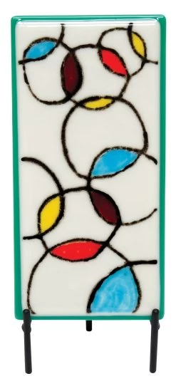 Try combing Liquid Stringer! (see additional images) Draw a pattern with Liquid Stringer mixed with frit. Comb the pattern with a rake and fire beautiful designs. Images courtesy of Fusion Glass.