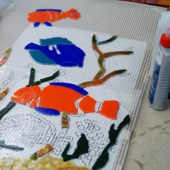 Tape mesh on top of your pattern. Glue materials to the mesh, then set the mesh right into your Thinset. Perfect for difficult to reach or larger areas such as architectural applications. Measures 48″ x 39-1/2 yard roll. Click “View Product Video” for a quick online demonstration.