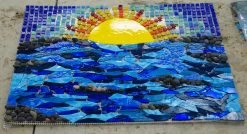 First image of project in progress using mesh from “Mosaic Techniques and Traditions” book. In process photos from Architectural Mosaic class.
