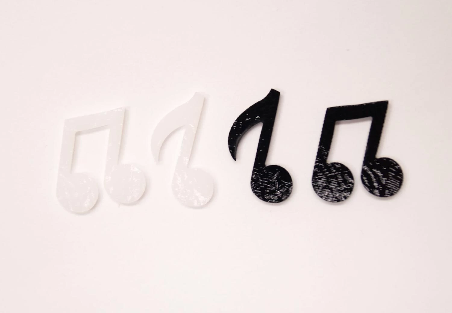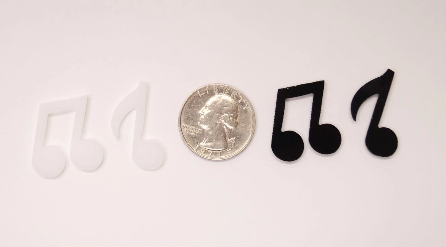 Pre-cut music notes make fabulous fused and mosaic art. Cut on a water saw for tight lines and precision detail. Sold in packs of 4. Single music notes measure 7/8″ x 5/16″, double music notes measure 11/16″ x 1-1/16″. Perfect for the music lover in your life or for unique home decor. 90 COE.