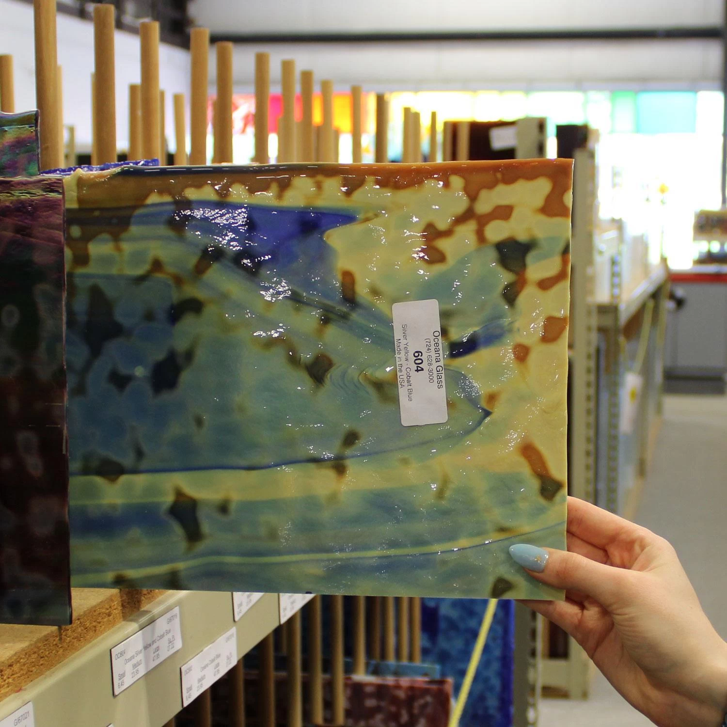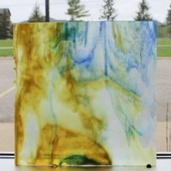 Create with beautifully mottled Oceana glass. Each sheet contains varying degrees of density, creating a three-dimensional quality which is uniquely Oceana. The colors are crisp and vibrant, making it a favorite of glass artists. Perfect for Tiffany lamps and reproductions.
