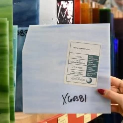 Create gorgeous stained glass projects with Oceanside’s unique Pearl Opals. These stunning color mixes are perfect for those special projects that require dynamic color combinations. Blue Skies Pearl Opal fills the pale blue slot within the Pearl Opal line. Combining soft blue, white and clear over the soft pearl opal base, as named this glass is perfect for the blue sky in your landscape design. Pearl opals have a soft, semi-granite Corsica texture on one side. This favorite is now fusible. 96 COE.Â