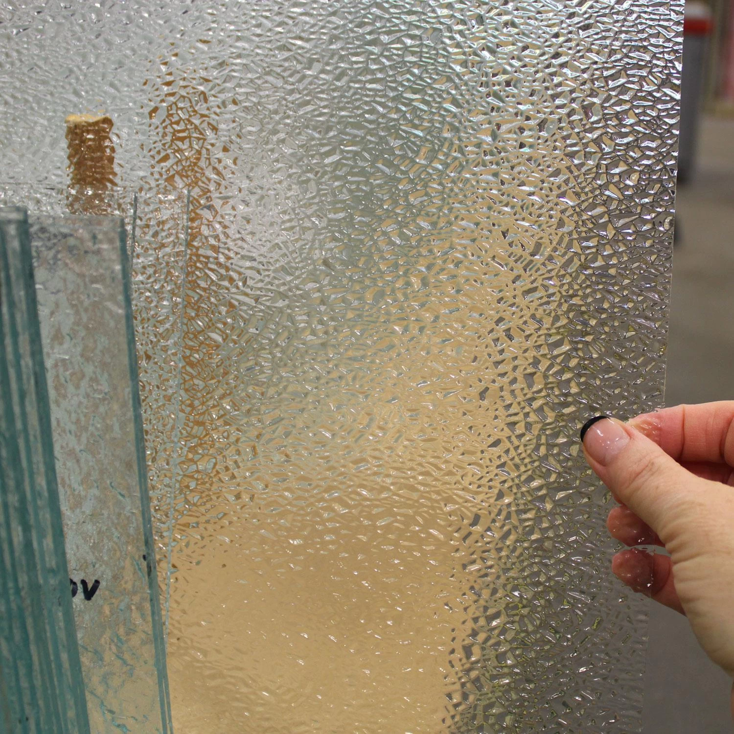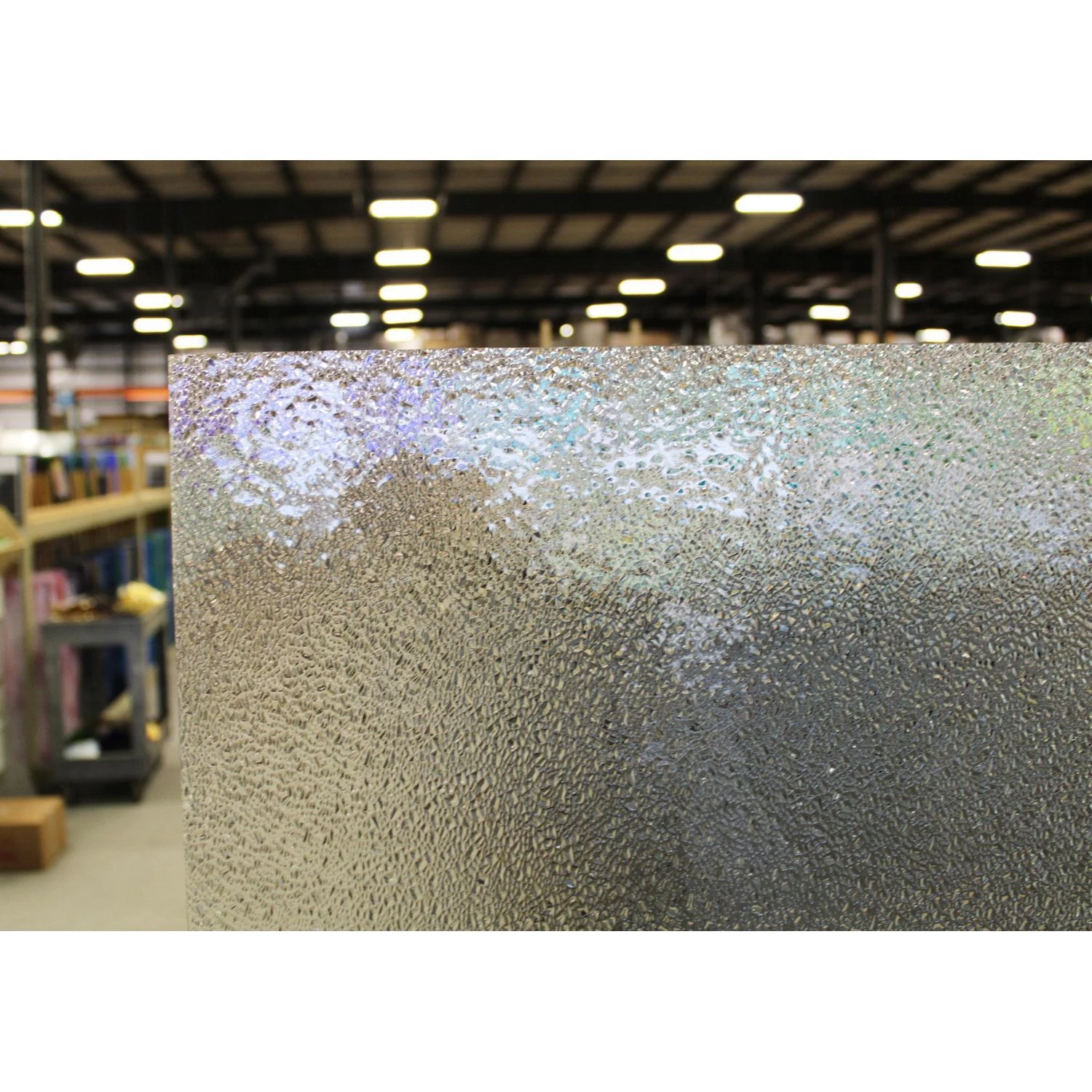Also known as their “Ice” design, Oceanside Double Granite offers bold, rich textures that greatly obscures objects placed on the other side. Clear textured glass, sometimes called architectural glass, can add incredible depth and beauty to your home. Textures, ranging from subtle to dramatic, add privacy, movement, and create ambiance in designs like nothing else. Most commonly used in cabinets and entryways, clear textures can be used to add dazzling appeal to panels, sun catchers and more! Use alone or in combination with other textures and colors to create a stunning piece of glass art.