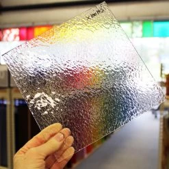 Clear textured glass, sometimes called architectural glass, can add incredible depth and beauty to your home. Textures, ranging from subtle to dramatic, add privacy, movement, and create ambiance in designs like nothing else. Most commonly used in cabinets and entryways, clear textures can be used to add dazzling appeal to panels, sun catchers and more! Use alone or in combination with other textures and colors to create a stunning piece of glass art. This favorite texture is now fusible. 96 COE.