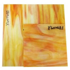 Create gorgeous stained glass projects with Oceanside’s unique Pearl Opals. These stunning color mixes are perfect for those special projects that require dynamic color combinations. Inferno Pearl Opal fills the orange yellow slot within the Pearl Opal. Combining white, orange, yellow and clear over the soft pearl opal base, this glass is perfect for sunsets. Pearl opals have a soft, semi-granite Corsica texture on one side. 96 COE.