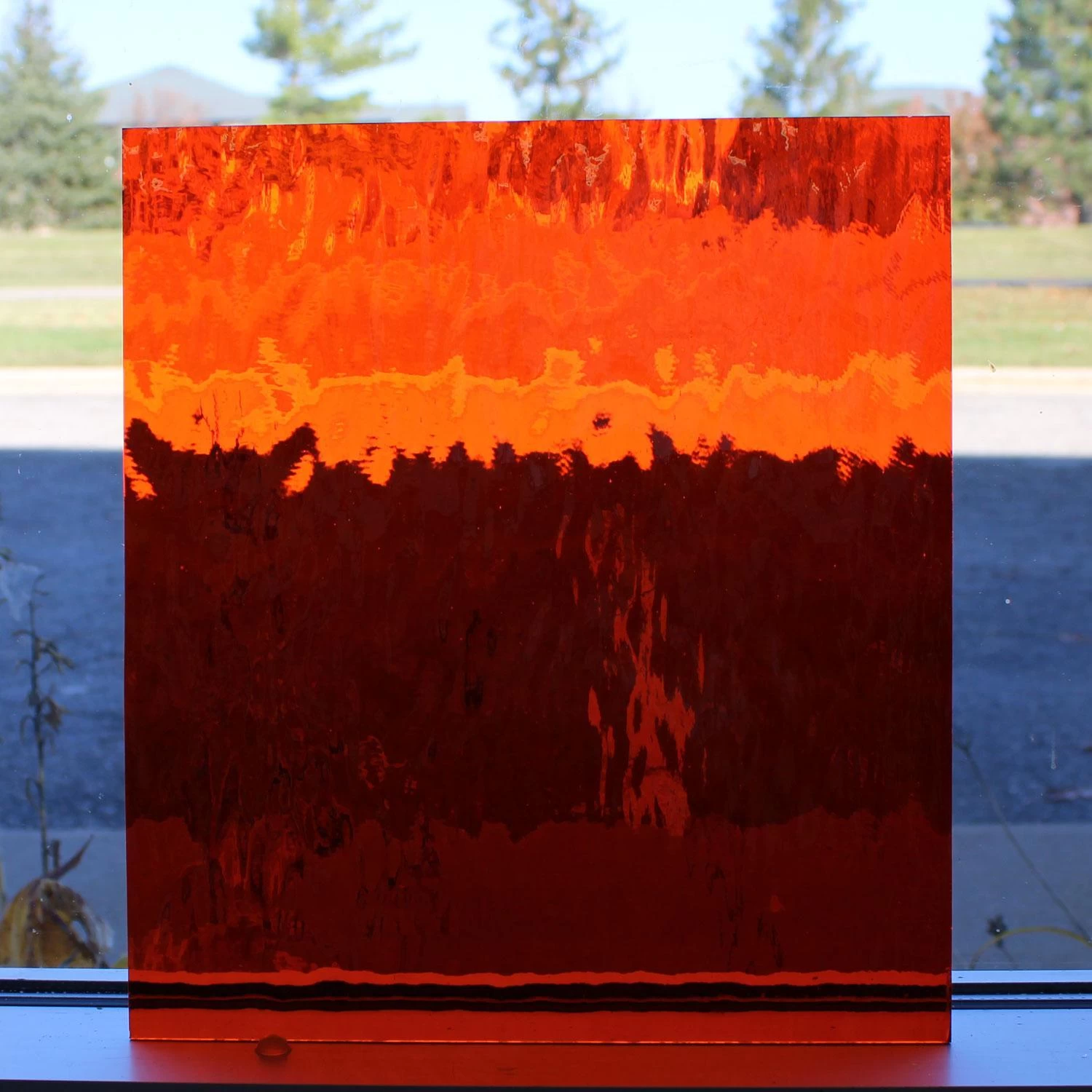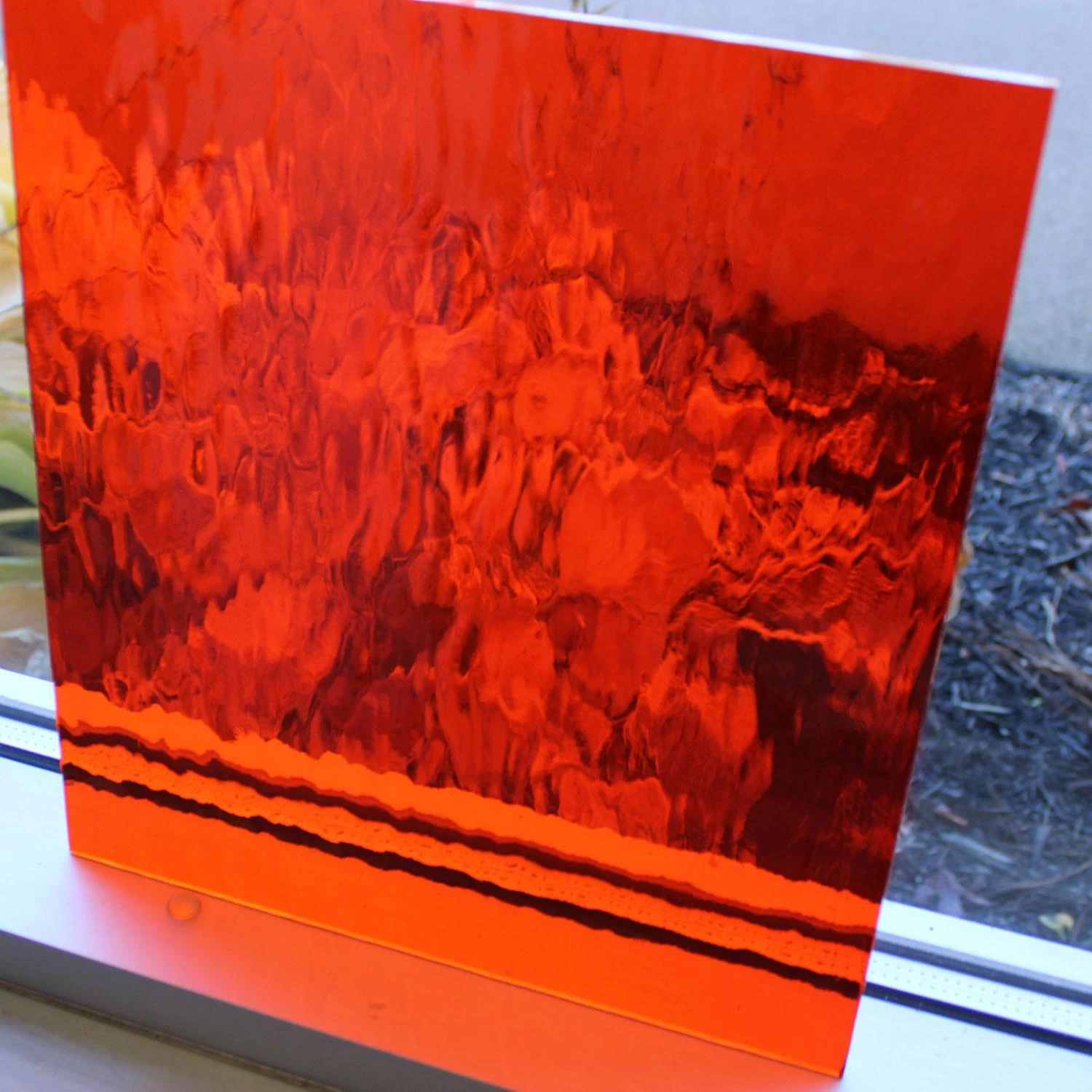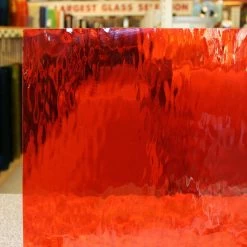 Oceanside Waterglass is a natural surface texture created by stretching the hot glass sheet while it is still in a pliable state. The result is gentle, rolling waves that resemble the surface of a lake or stream. Ideal for backgrounds, water and sky scenes. This favorite texture is now fusible. 96 COE.