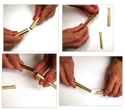 To fill the tip, separate the tube, cover the tip, fill with powder and slide the cap on. Tips easily attach to the Powder Vibe base with a magnet, making changes fast and easy. Simply press the pressure switch on the Powder Vibe to start the flow of powder, and release to stop. Powder flows out smoothly when vibrated and allows for quick, mess-free application. Sleek design allows for use in both the right and left hand. Runs on two “AAA” batteries for approximately 14 – 18 hours of continuous use. Includes one Small Capacity Original Tip for use with powdered frits and powdered enamels.