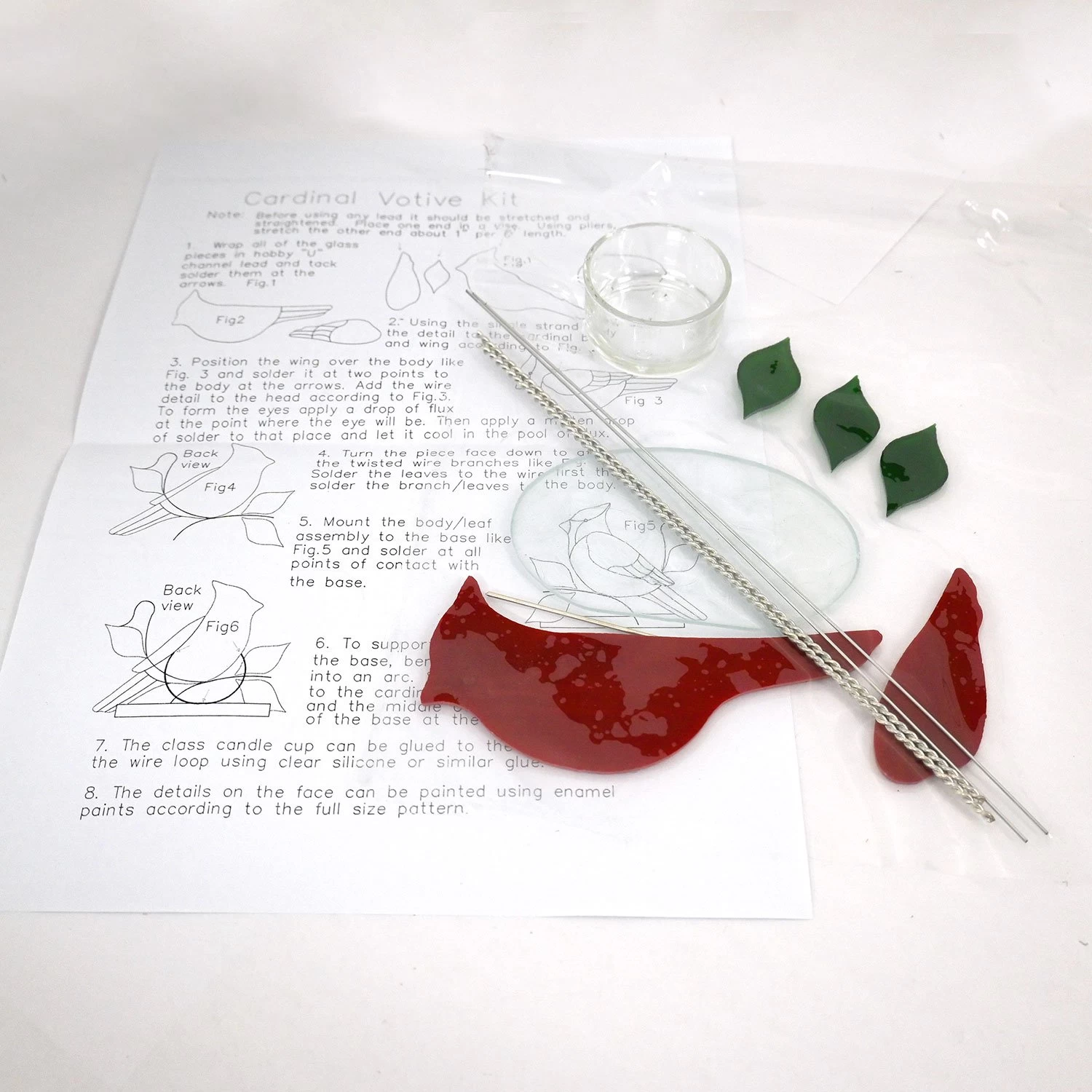 - Includes instructions, pre-cut glass and decorative elements – Just add lead and votive candle