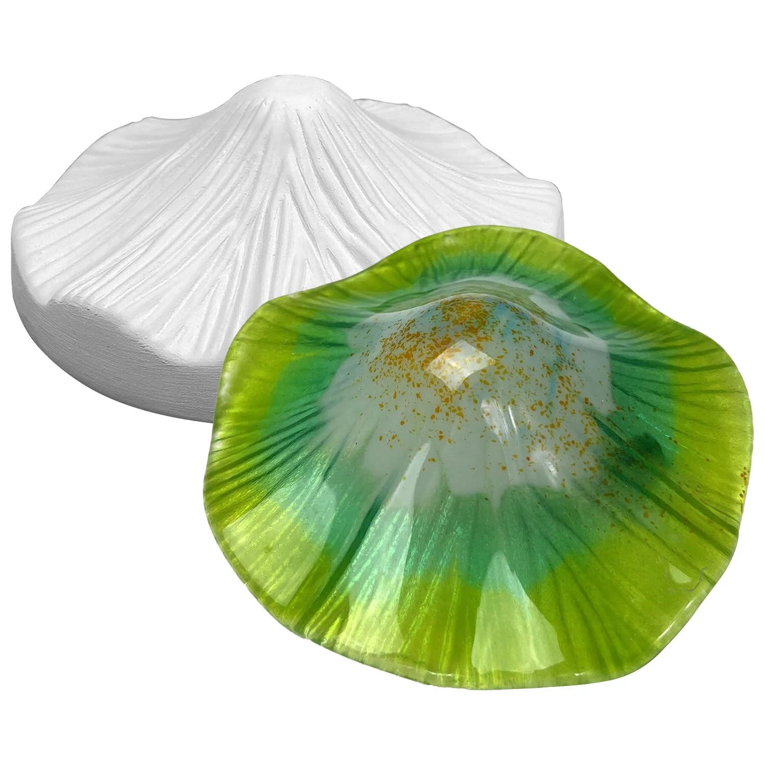 Add more to your glass garden with fun mushrooms and flowers. The gentle curve of the mold gives you the freedom to form gently slopped mushrooms, simple slurry flowers or jelly fish. Mold measures 5-1/2″ diameter x 2-1/4″ high. Ceramic molds can be fired many times. Must be kiln washed before use.