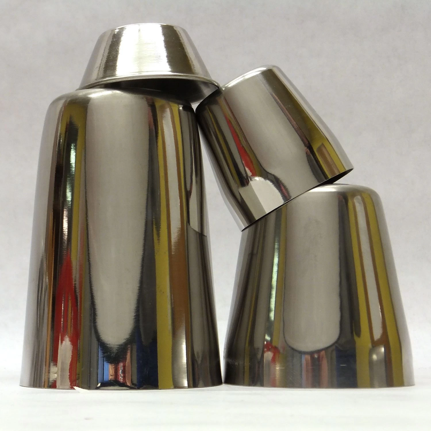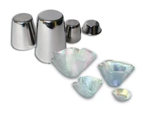 Four candle cup sizes to create anything from small tea light candle shelters to larger projects. See size perspective of mold with quarter images shown. Stainless steel cups sizes: 1″ high x 1 3/4″ diameter, 2″ high x 1 1/2″ diameter,  3″ high x 2″ diameter, 4 1/2″ high x 2 1/8″ diameter.