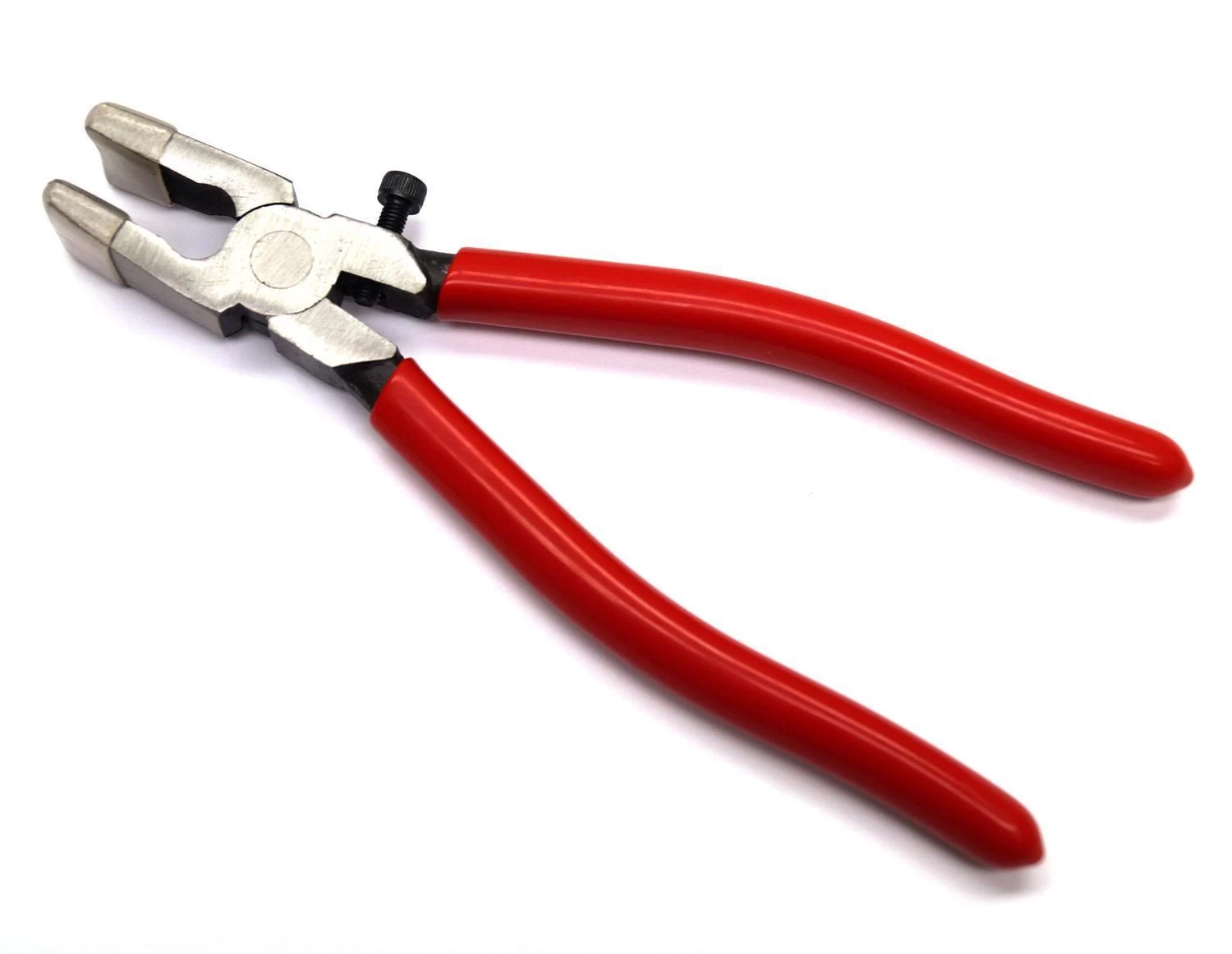 Simply position the jaws of these durable metal pliers at the end of your score on the edge of the glass, and gently squeeze for a clean break. Convenient centering mark helps the curved jaw to exert equal pressure on each side of the score. Lifetime guarantee (excludes replaceable parts). Measures 8″ long.